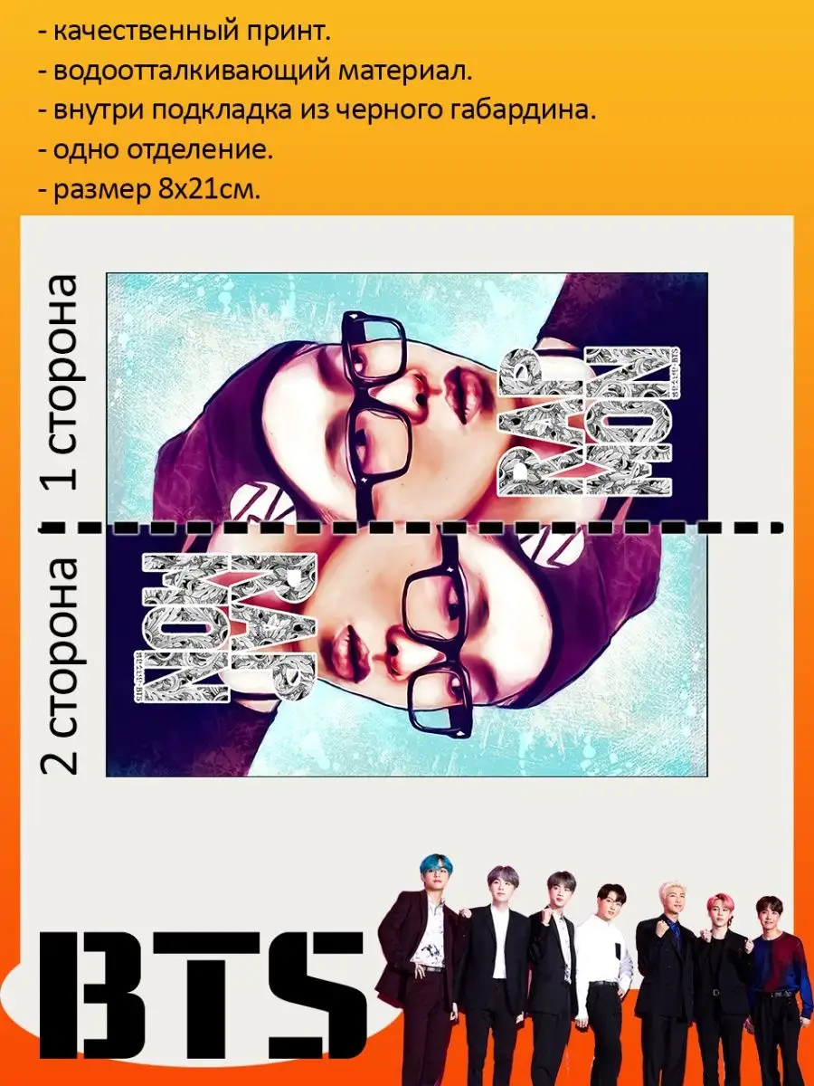 Пенал школьный с большой молнией и с одним вместительным отделением. Изображение с K-pop группой БТС (BTS). Принт яркий и четкий, устойчивый к выцветанию и стирке.