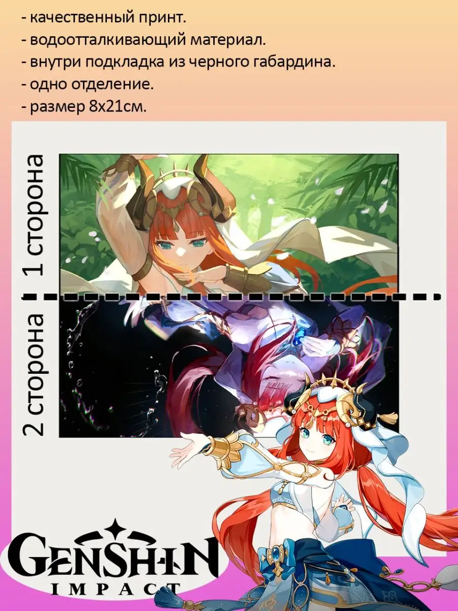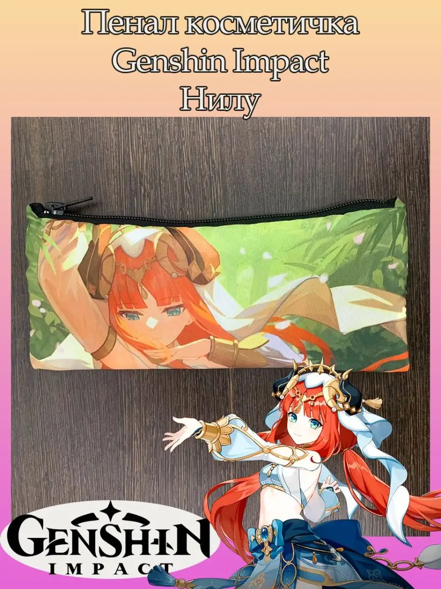 Пенал школьный с большой молнией и с одним вместительным отделением. Изображение из игры Геншин Импакт (Genshin Impact), персонаж Нилу (Nilou). Принт яркий и четкий, устойчивый к выцветанию и стирке.