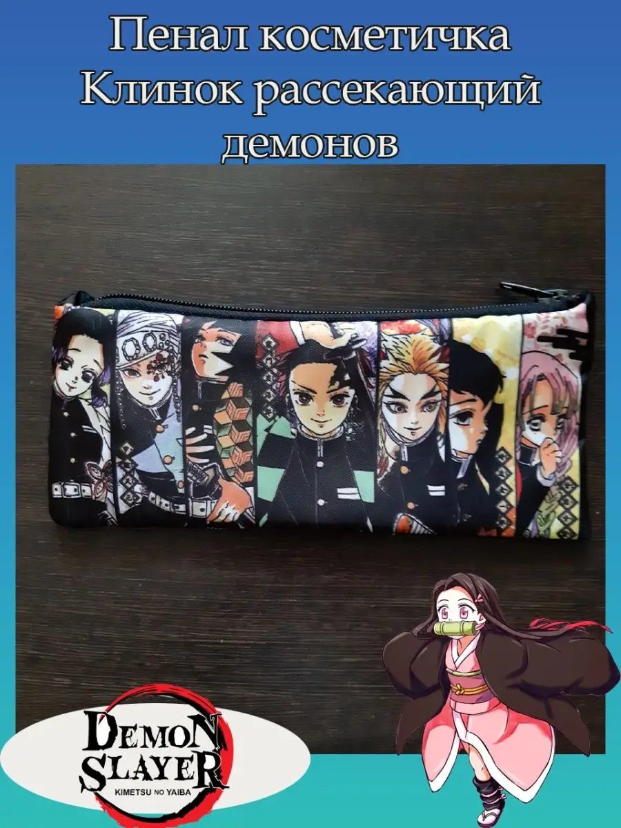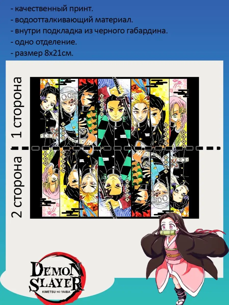 Пенал школьный с большой молнией и с одним вместительным отделением. Изображение из аниме Клинок рассекающий демонов (Demon Slayer: Kimetsu no Yaiba). Принт яркий и четкий, устойчивый к выцветанию и стирке.