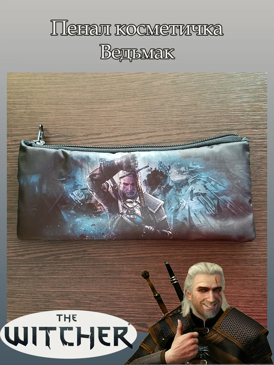 Пенал школьный с большой молнией и с одним вместительным отделением. Изображение из игры Ведьмак (The Witcher). Принт яркий и четкий, устойчивый к выцветанию и стирке.