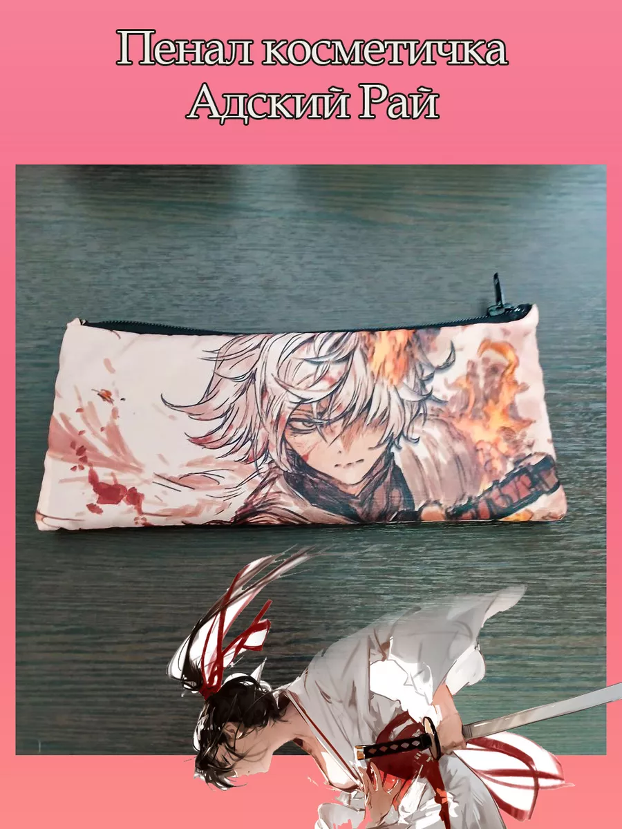 Пенал школьный с большой молнией и с одним вместительным отделением. Изображение с персонажами аниме Адский Рай (Jigokuraku). Принт яркий и четкий, устойчивый к выцветанию и стирке.