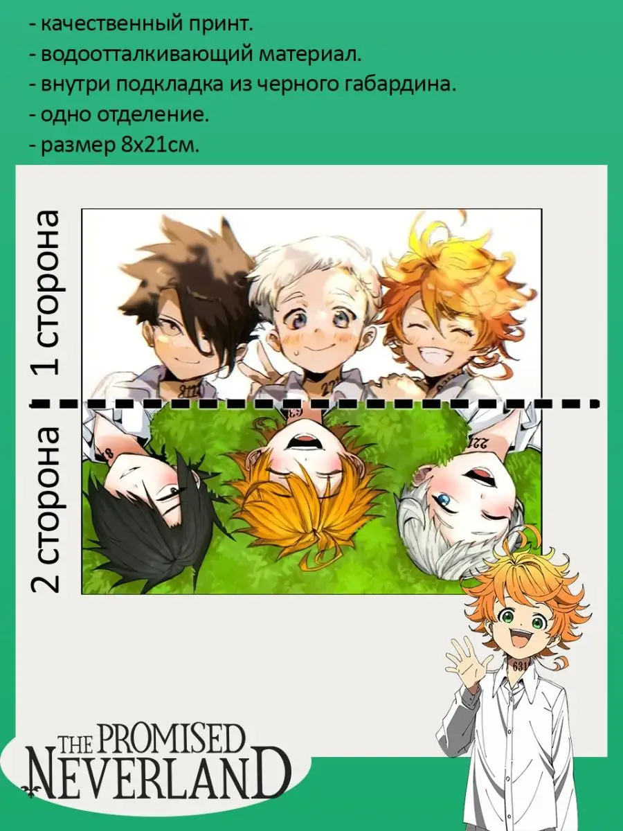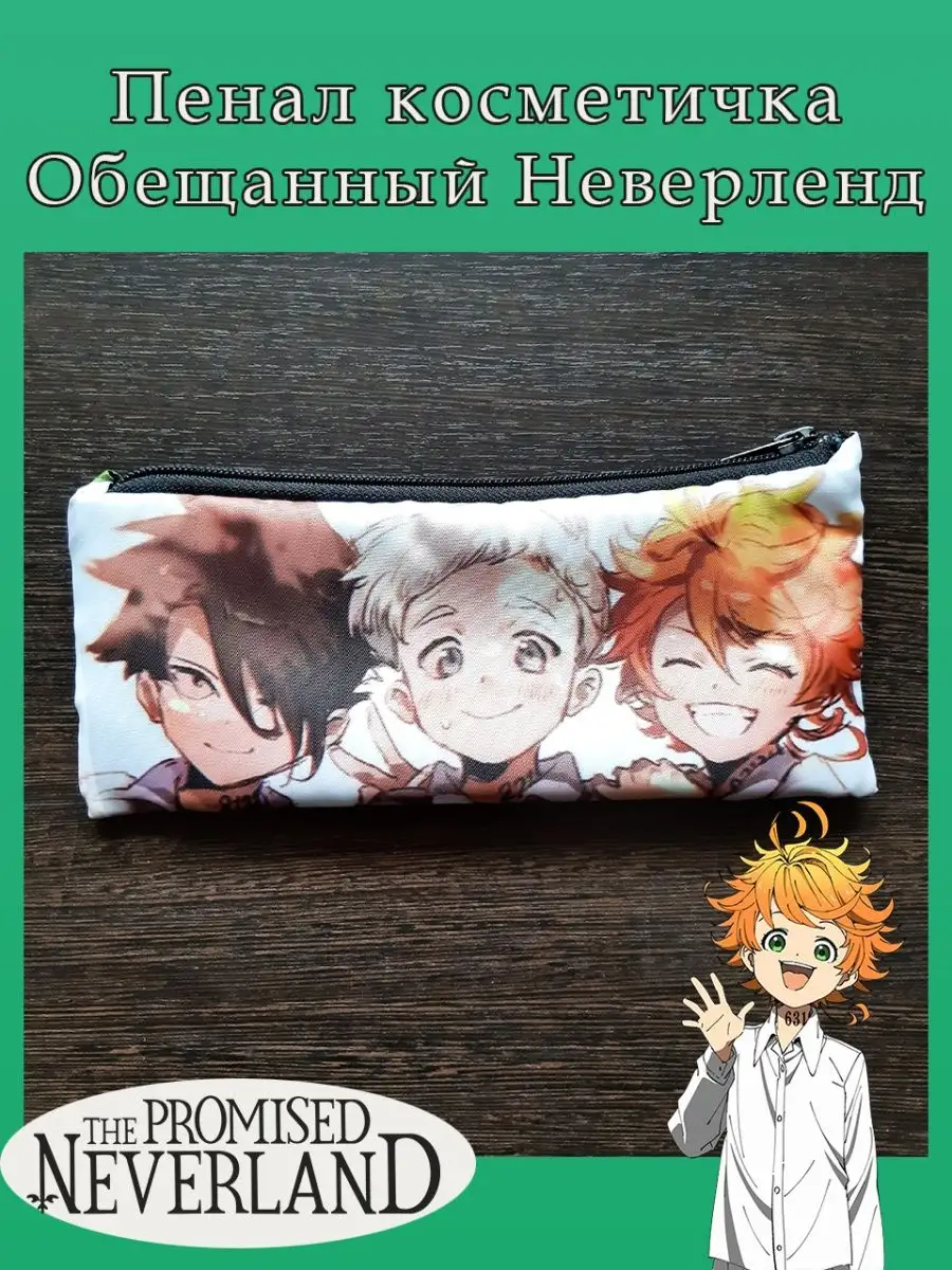 Пенал школьный с большой молнией и с одним вместительным отделением. Изображение из аниме Обещанный Неверленд (The Promised Neverland). Принт яркий и четкий, устойчивый к выцветанию и стирке.