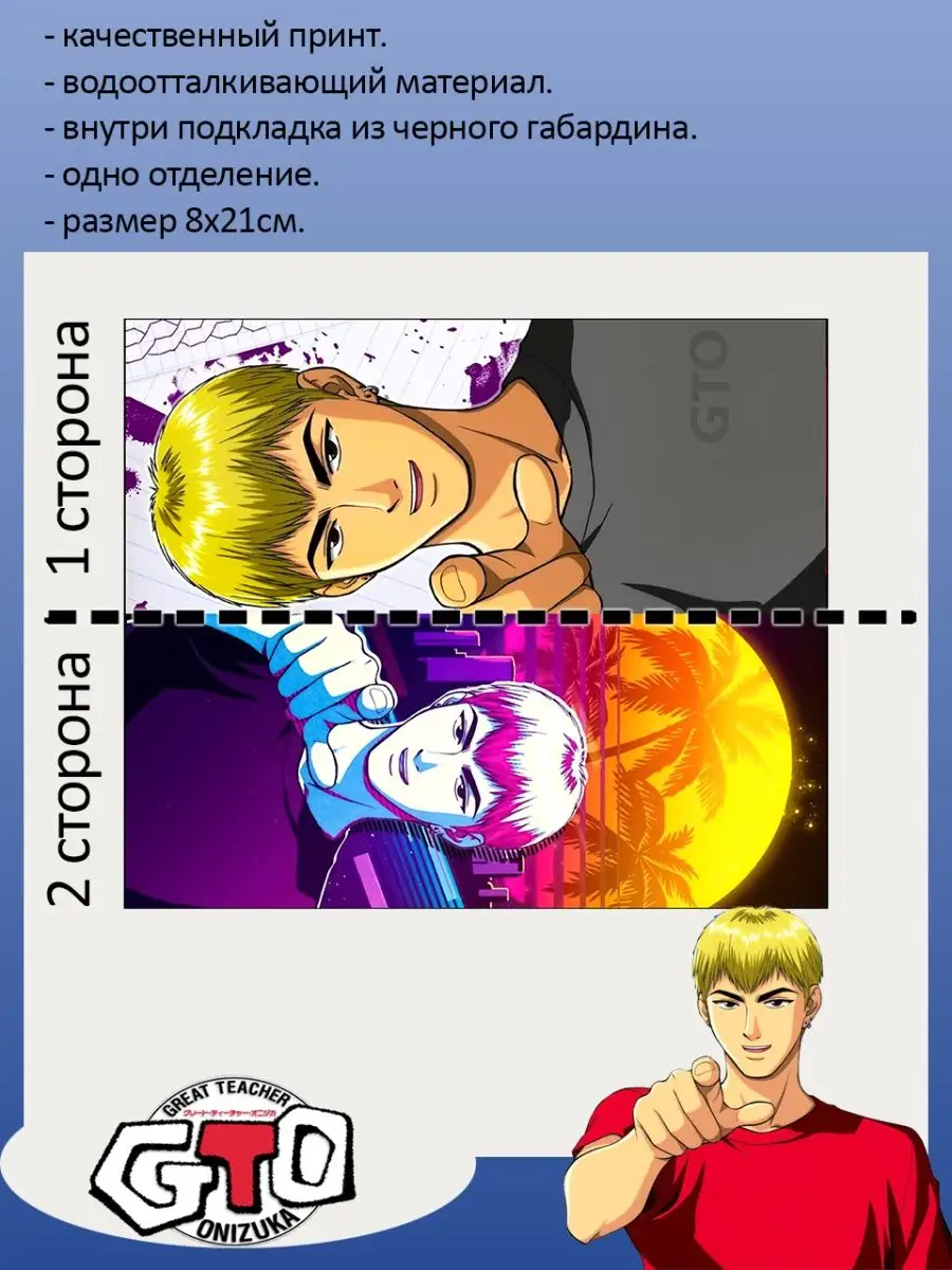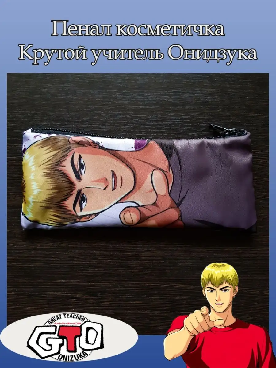 Пенал школьный с большой молнией и с одним вместительным отделением. Изображение из аниме Крутой учитель Онидзука (GTO). Принт яркий и четкий, устойчивый к выцветанию и стирке.