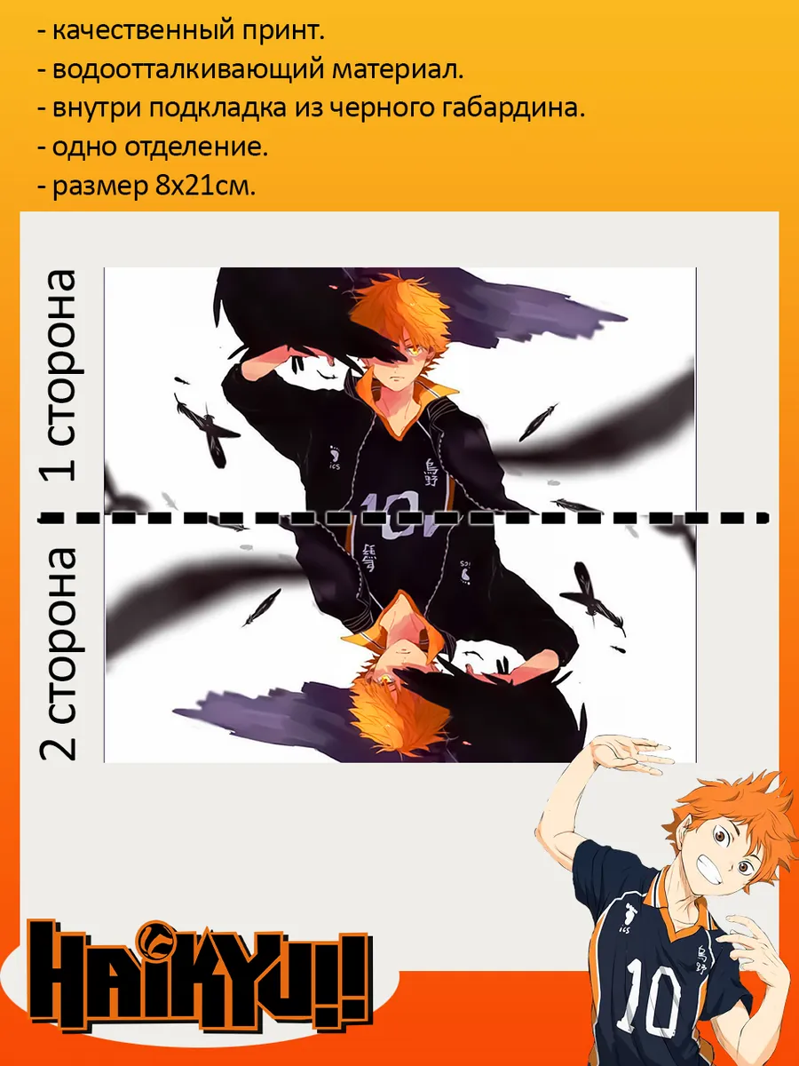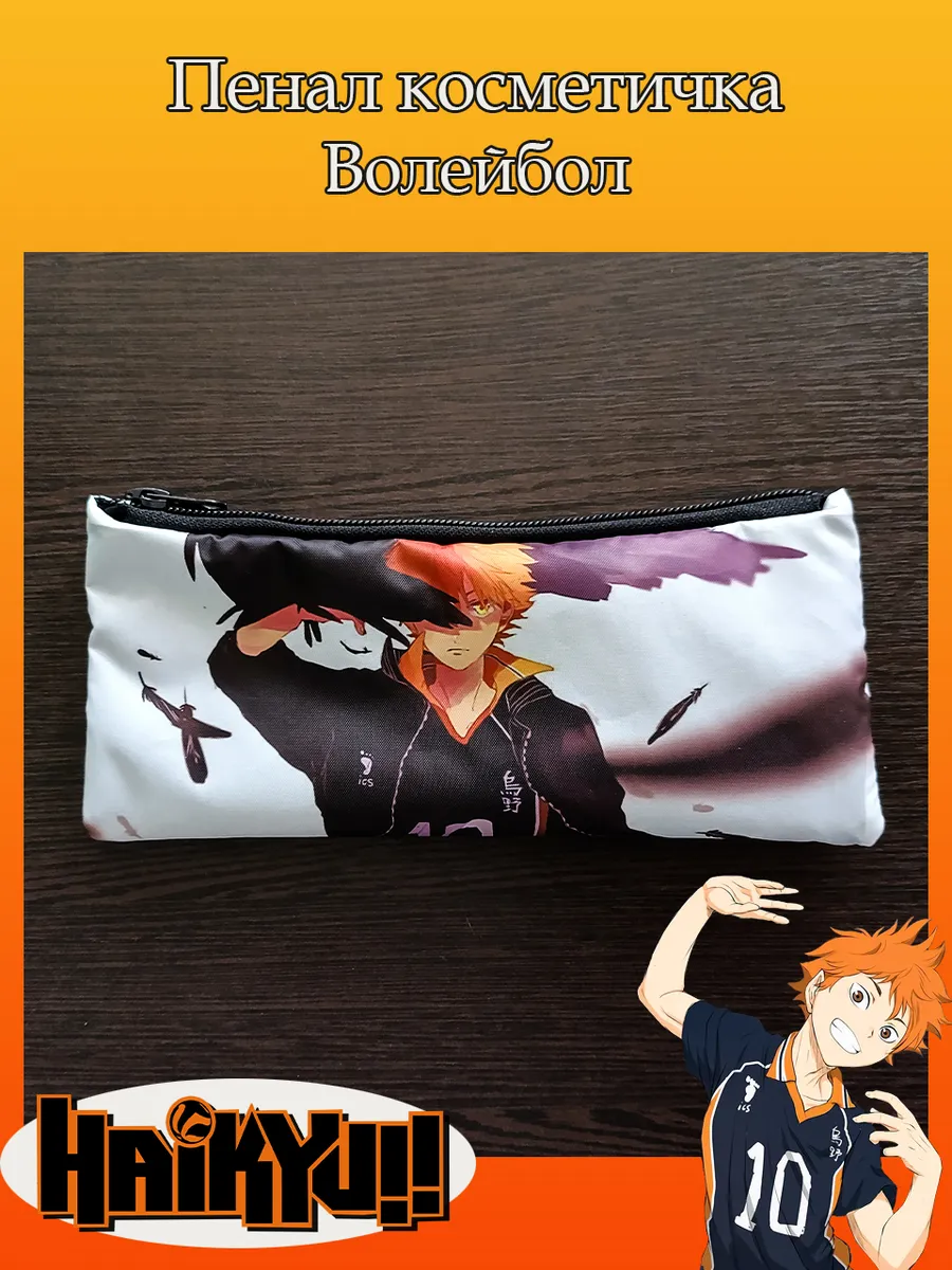 Пенал школьный с большой молнией и с одним вместительным отделением. Изображение из аниме Волейбол (Haikyuu!!). Принт яркий и четкий, устойчивый к выцветанию и стирке.