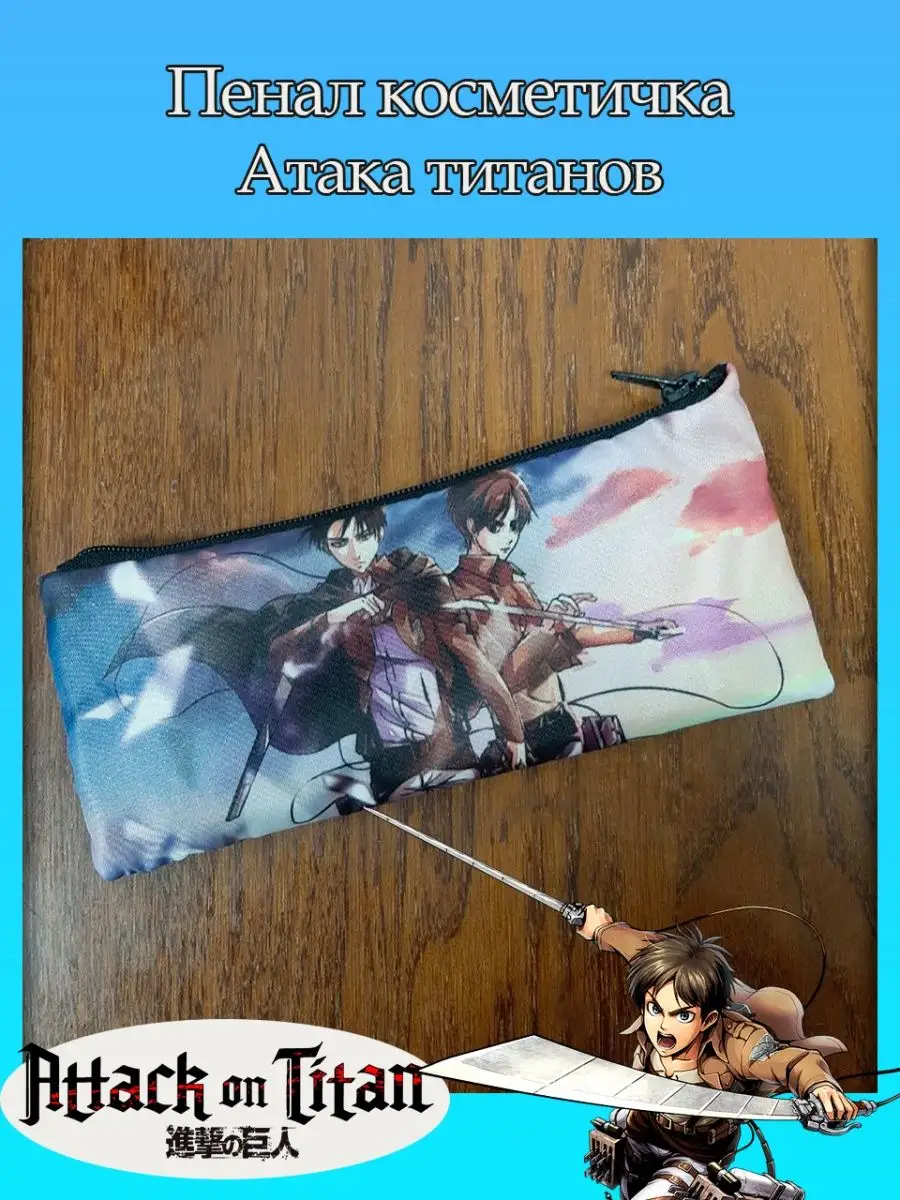 Пенал школьный с большой молнией и с одним вместительным отделением. Изображение из аниме Атака титанов (Attack on Titan). Принт яркий и четкий, устойчивый к выцветанию и стирке.