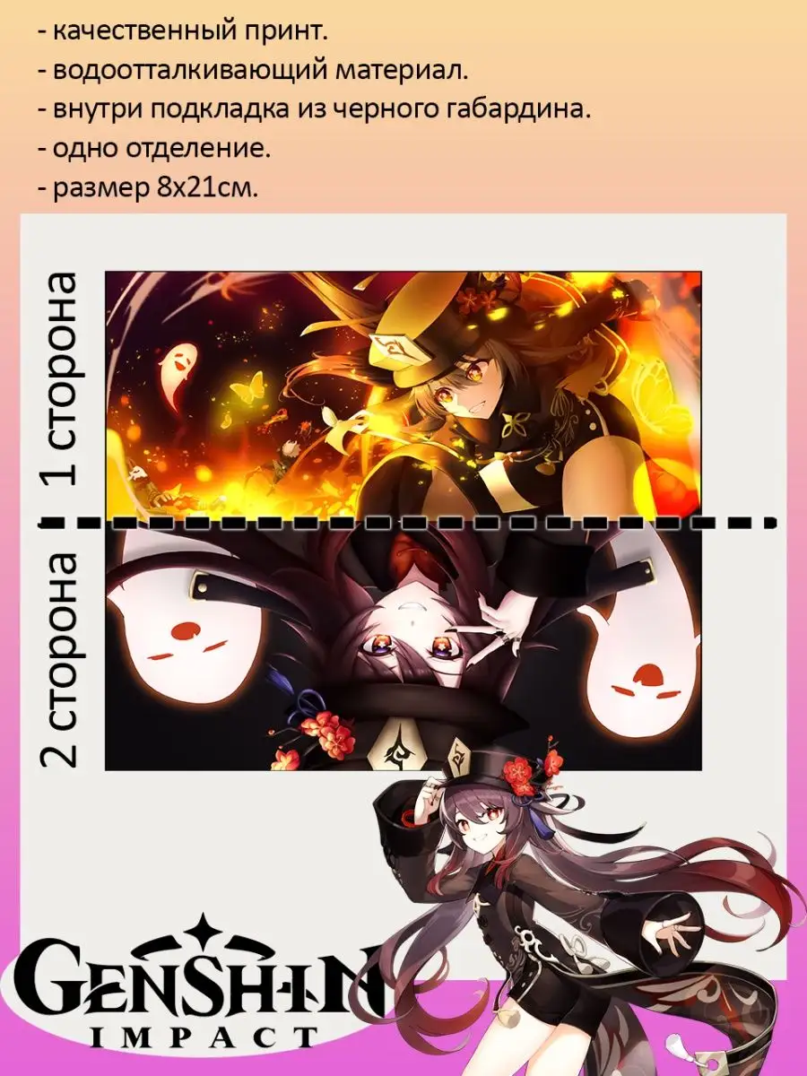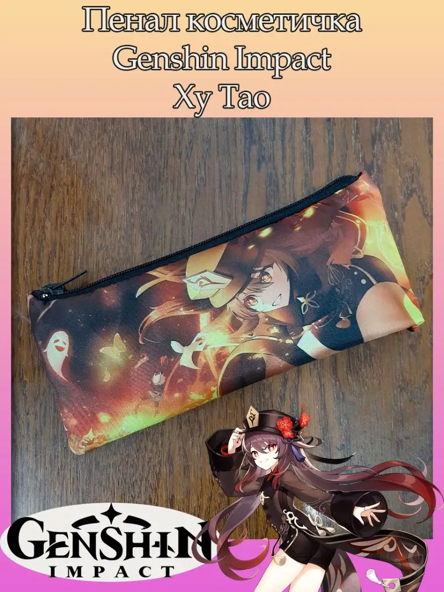Пенал школьный с большой молнией и с одним вместительным отделением. Изображение из игры Геншин Импакт (Genshin Impact). Принт яркий и четкий, устойчивый к выцветанию и стирке.