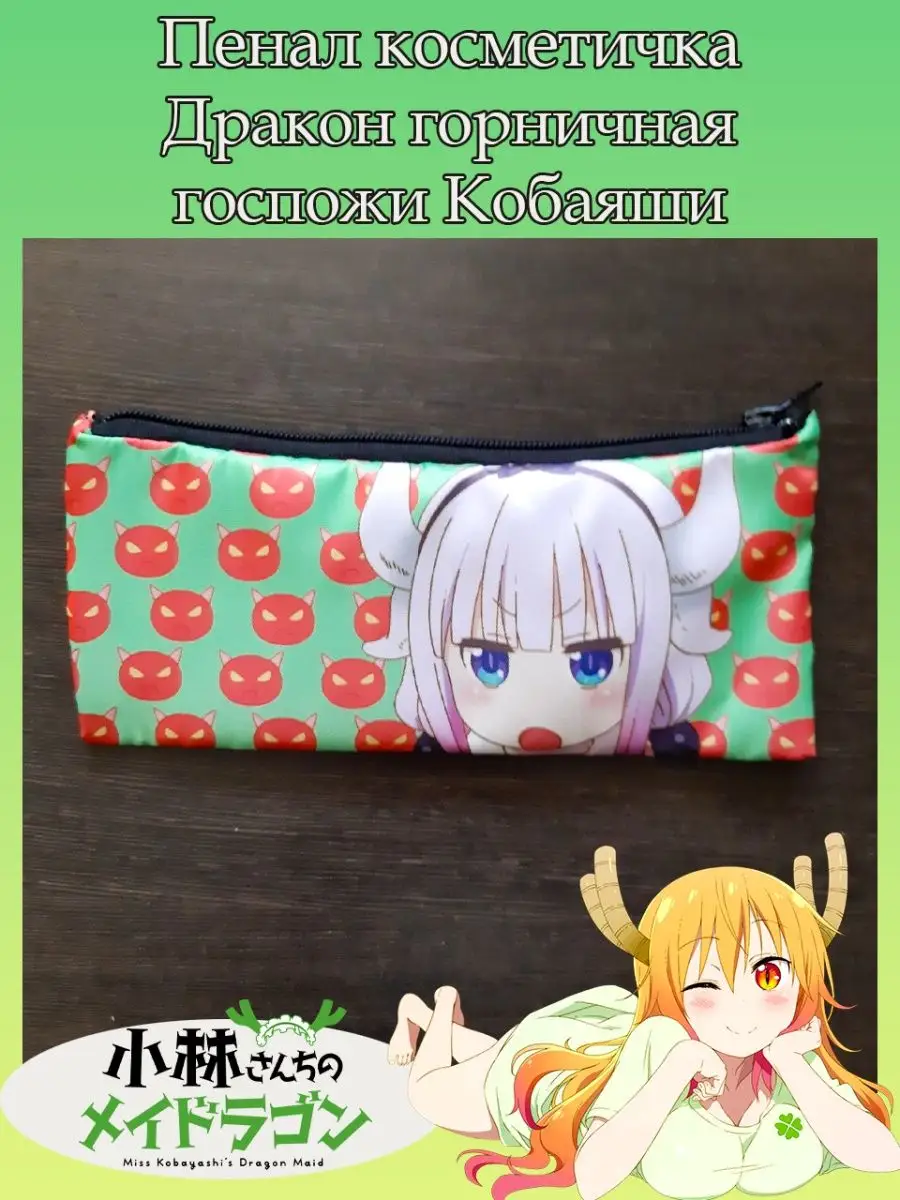 Пенал школьный с большой молнией и с одним вместительным отделением. Изображение из аниме Дракон горничная госпожи Кобаяши (Kobayashi-san Chi No Maid Dragon). Принт яркий и четкий, устойчивый к выцветанию и стирке.