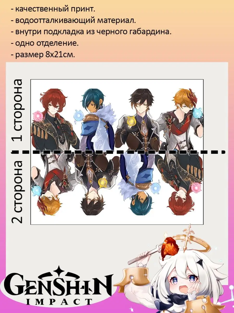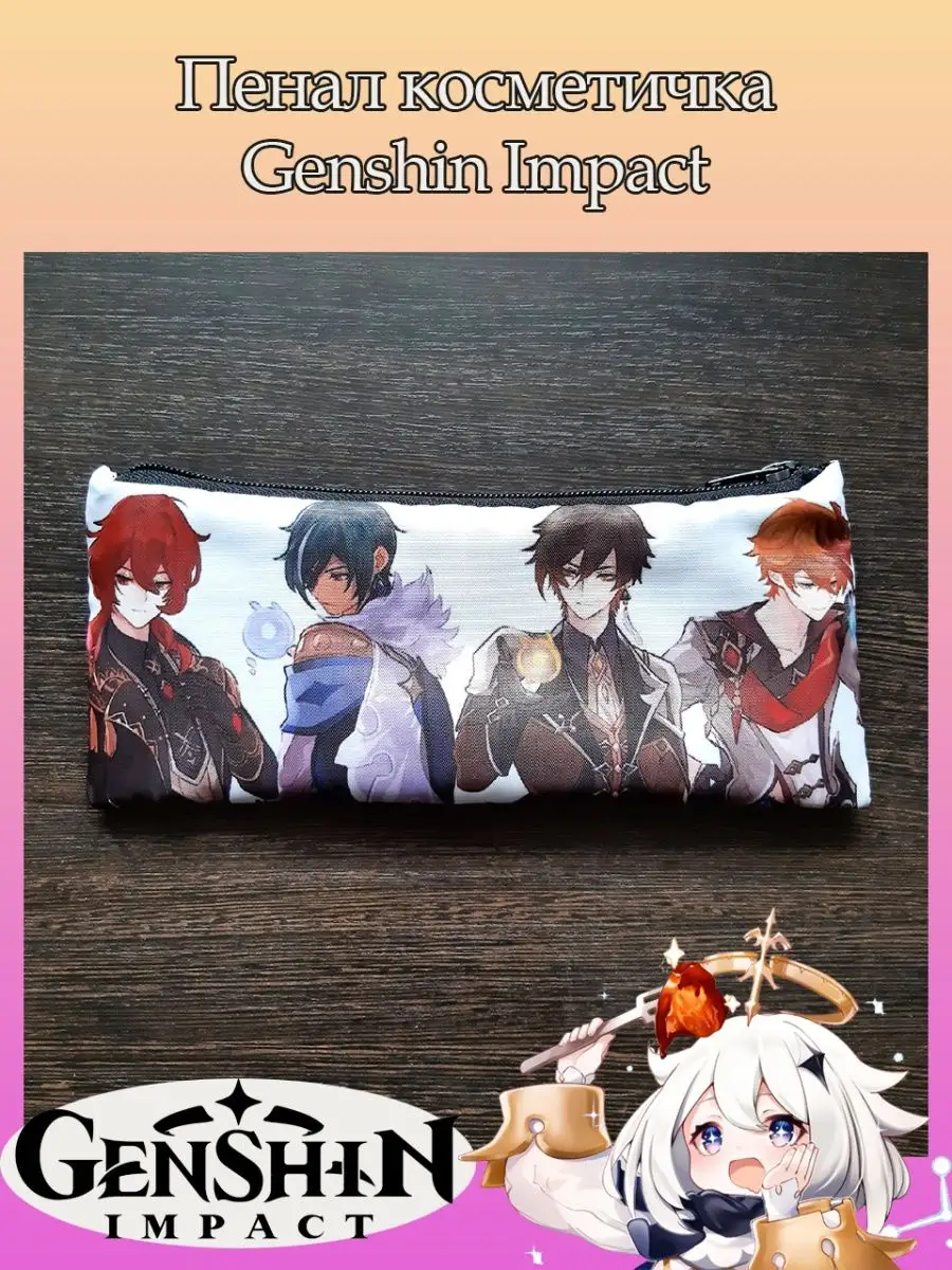 Пенал школьный с большой молнией и с одним вместительным отделением. Изображение из игры Геншин Импакт (Genshin Impact). Принт яркий и четкий, устойчивый к выцветанию и стирке.
