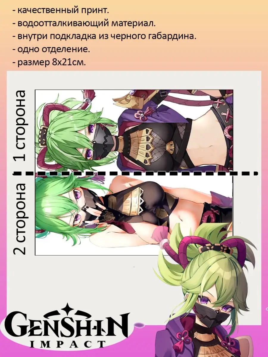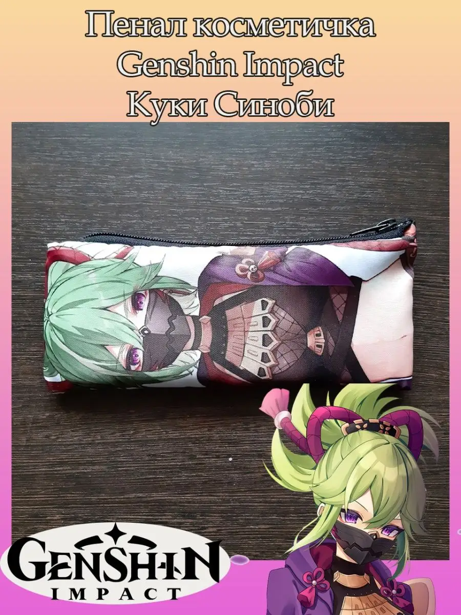 Пенал школьный с большой молнией и с одним вместительным отделением. Изображение из игры Геншин Импакт (Genshin Impact) с персонажем Куки . Принт яркий и четкий, устойчивый к выцветанию и стирке.