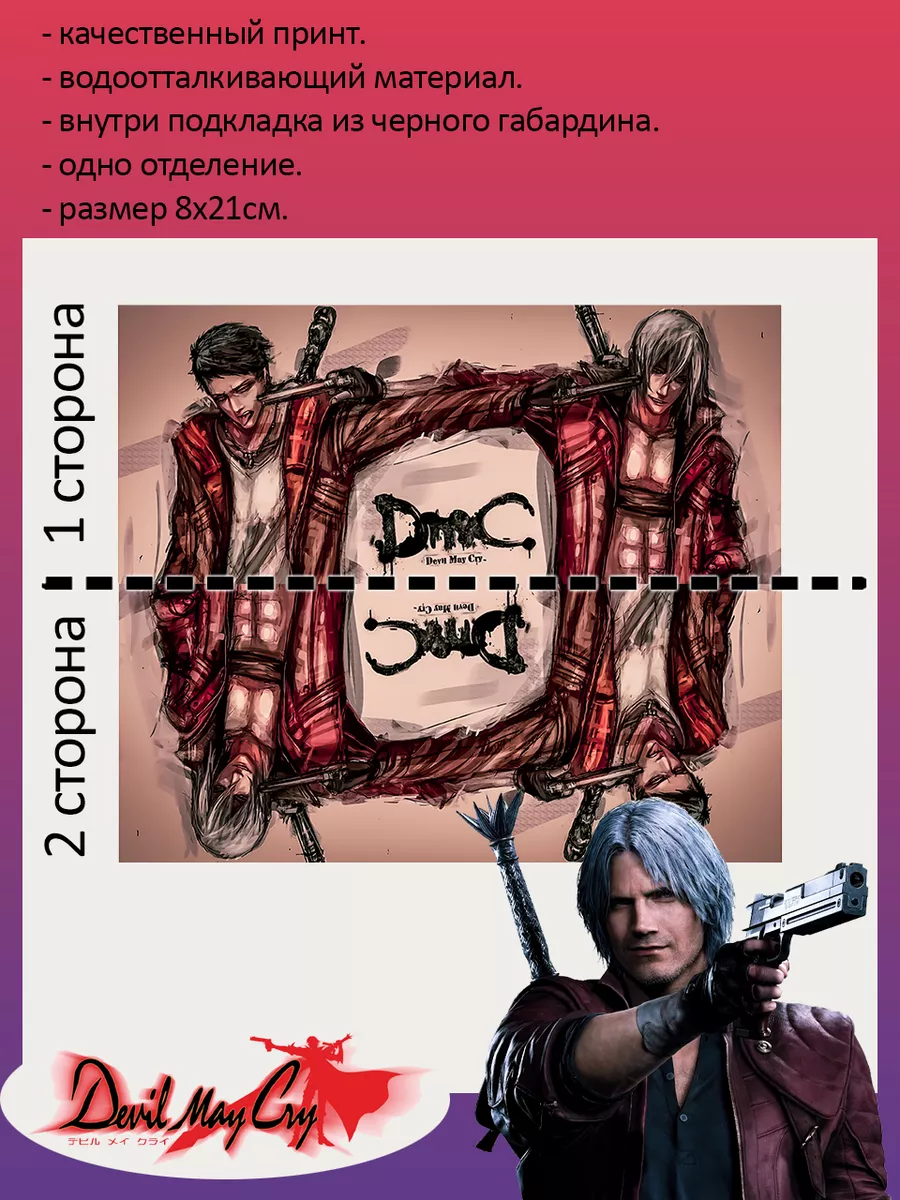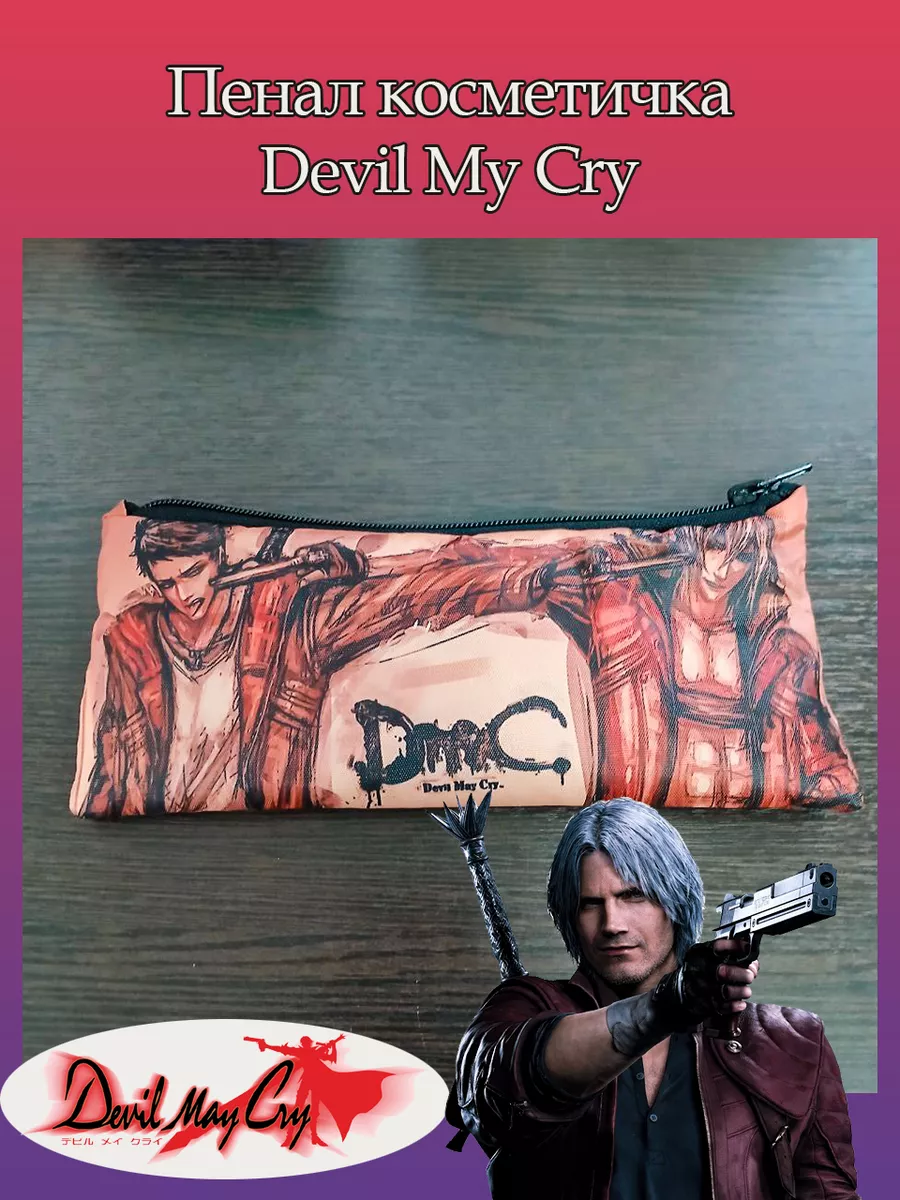 Пенал школьный с большой молнией и с одним вместительным отделением. Изображение из компьютерная игра Девил Май Край (Devil May Cry DMC). Принт яркий и четкий, устойчивый к выцветанию и стирке.