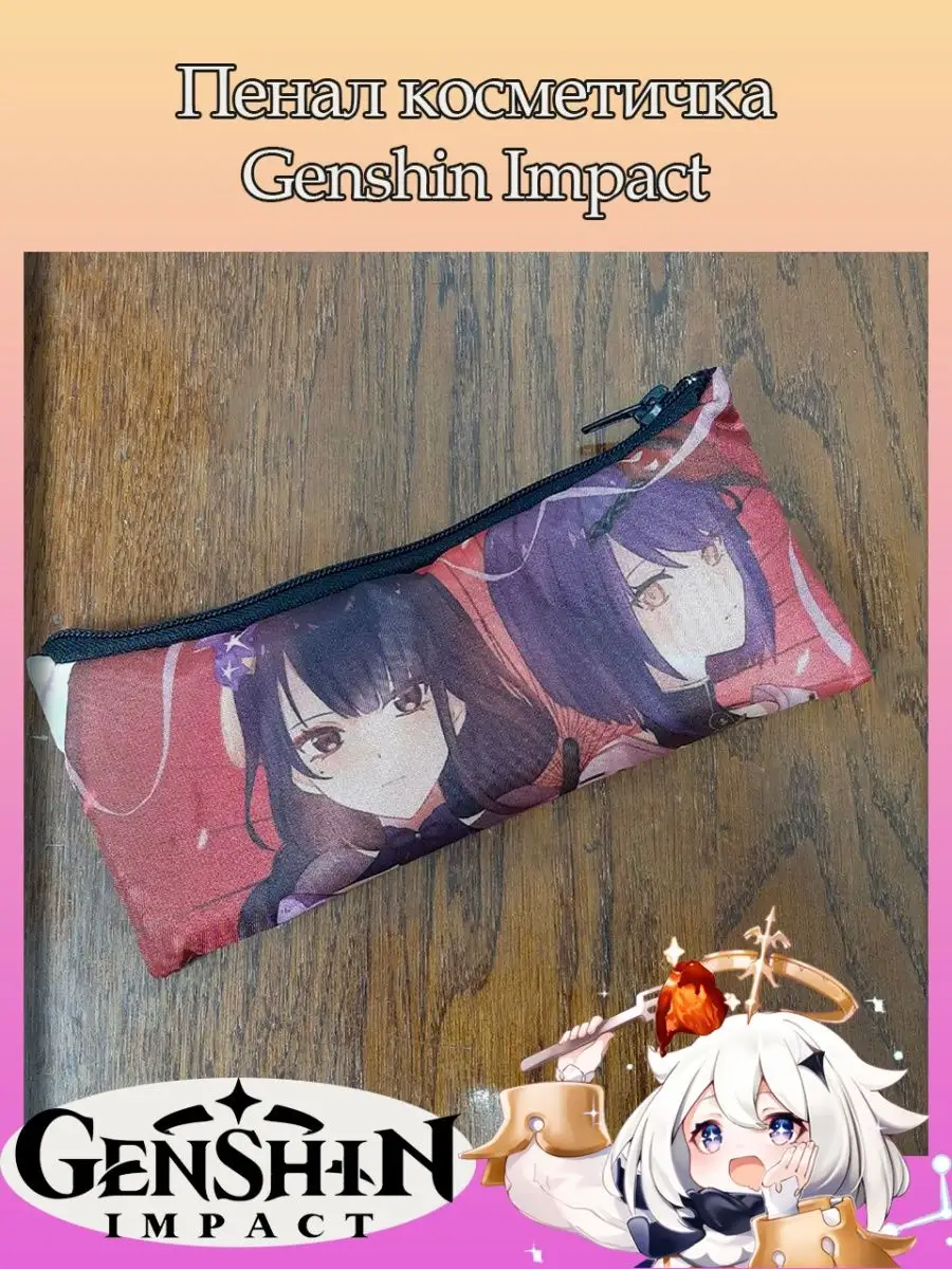 Пенал школьный с большой молнией и с одним вместительным отделением. Изображение из игры Геншин Импакт (Genshin Impact). Принт яркий и четкий, устойчивый к выцветанию и стирке.
