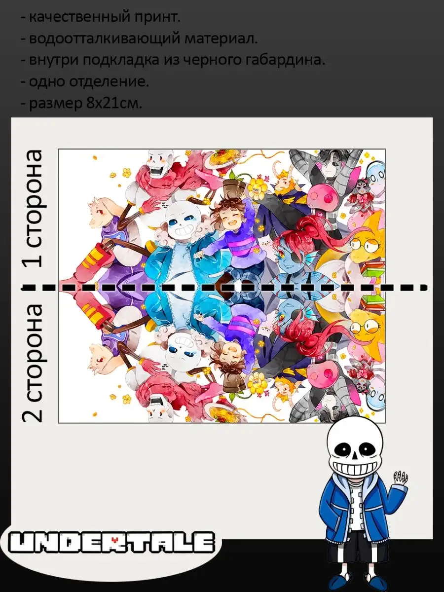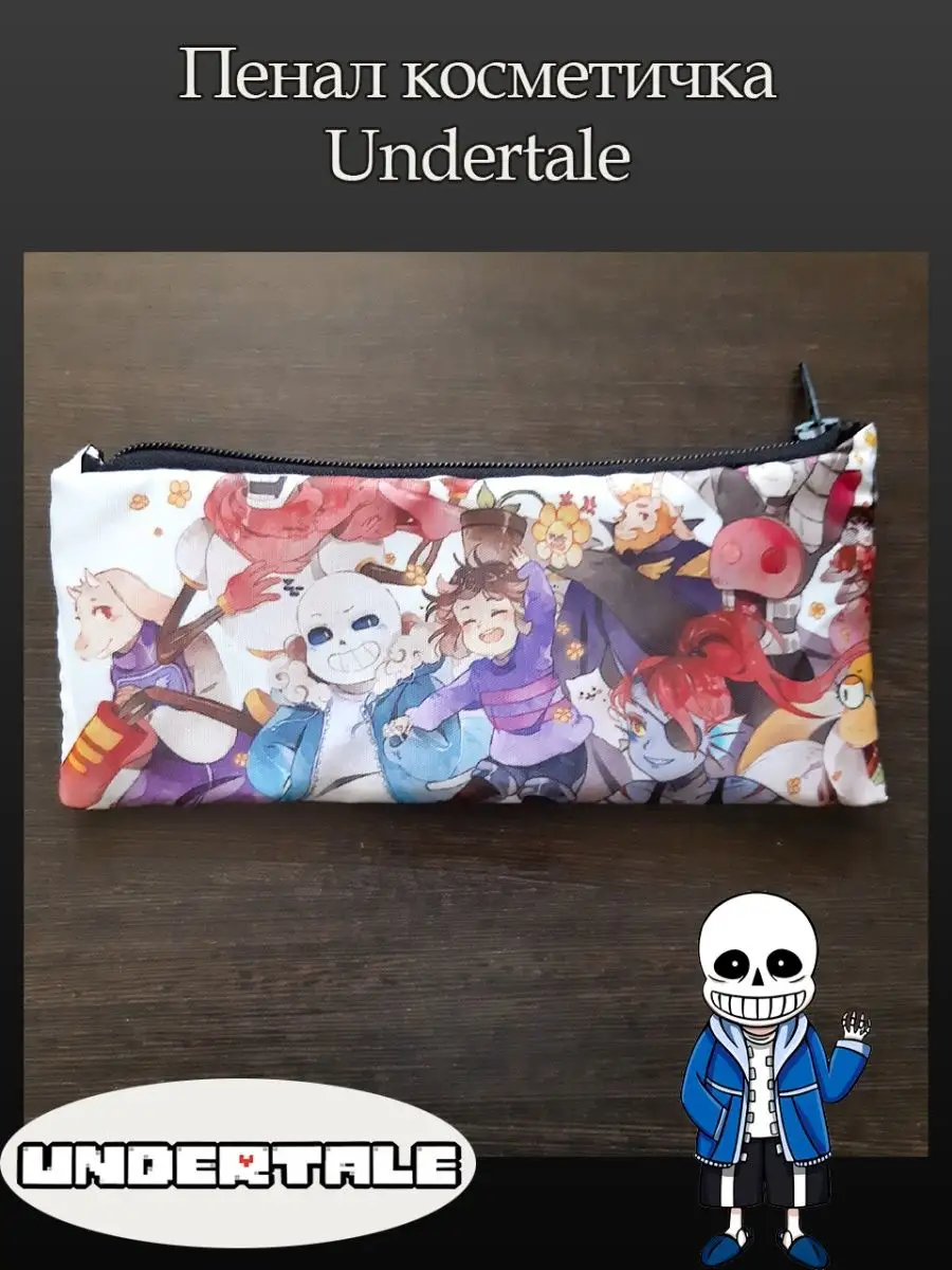 Пенал школьный с большой молнией и с одним вместительным отделением. Изображение из игры Андертейл (Undertale). Принт яркий и четкий, устойчивый к выцветанию и стирке.