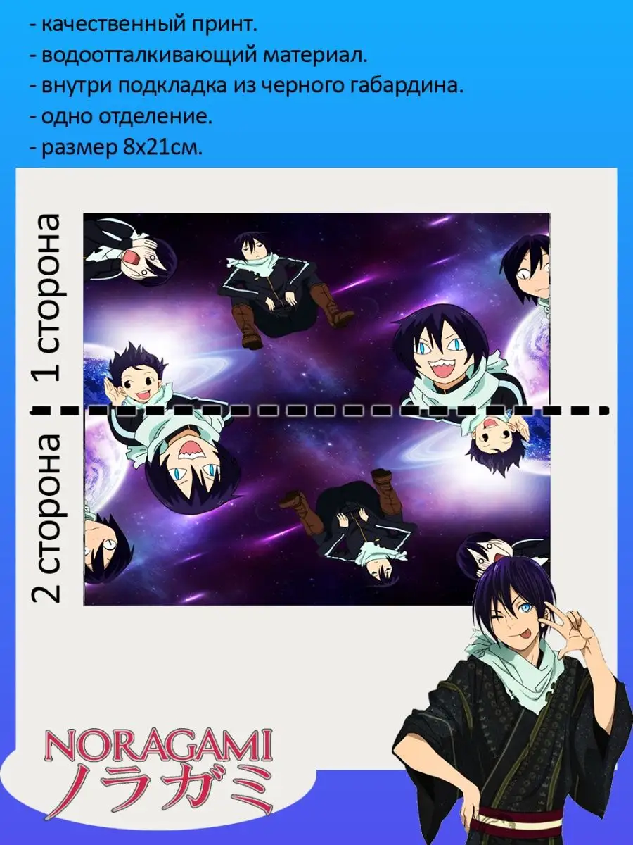Пенал школьный с большой молнией и с одним вместительным отделением. Изображение из аниме Бездомный Бог (Noragami). Принт яркий и четкий, устойчивый к выцветанию и стирке.