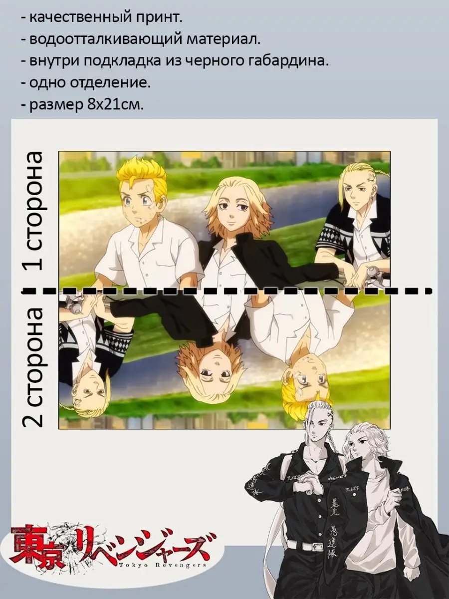 Пенал школьный с большой молнией и с одним вместительным отделением. Изображение из аниме Токийские мстители (Tokyo Revengers). Принт яркий и четкий, устойчивый к выцветанию и стирке.