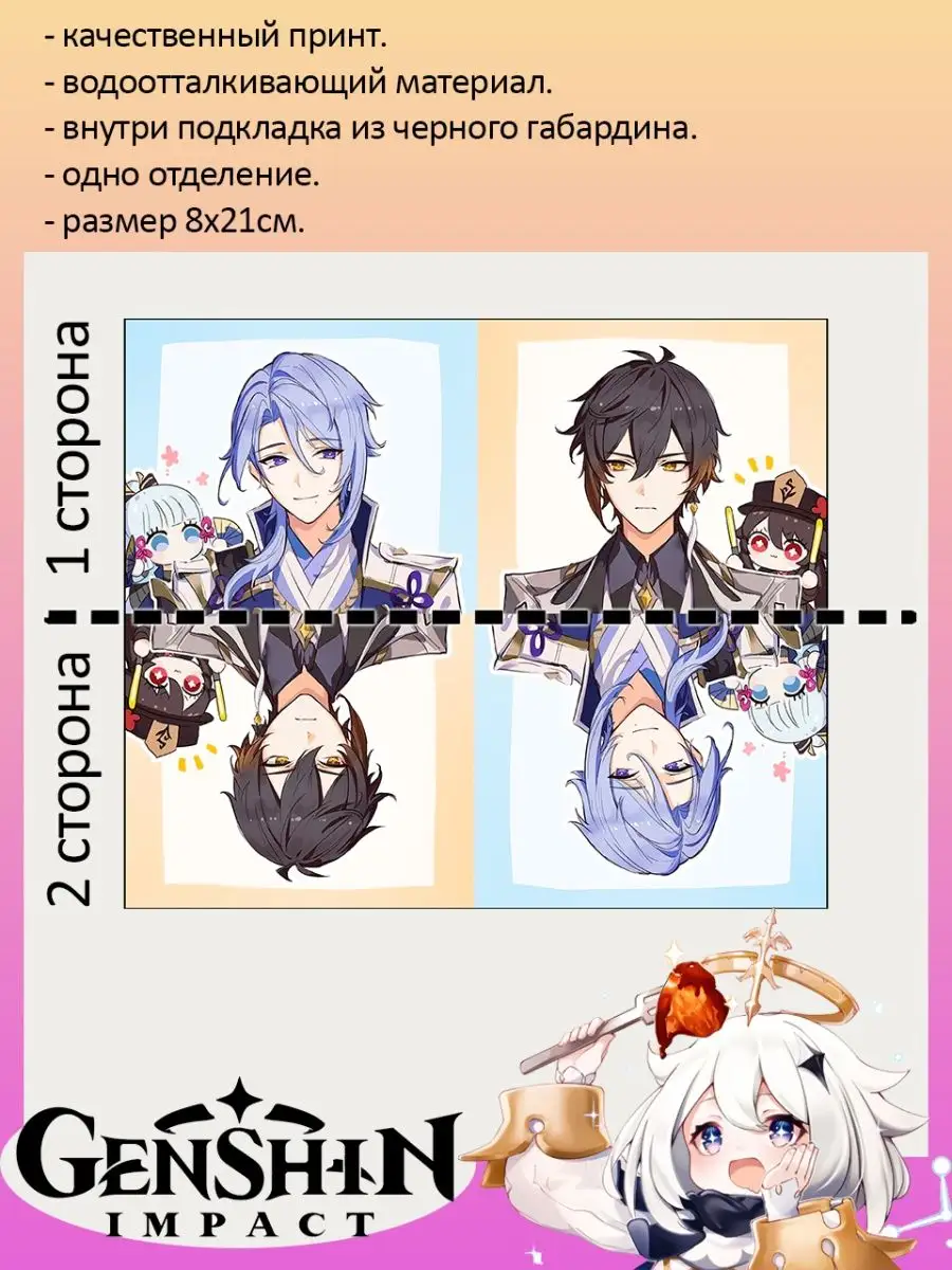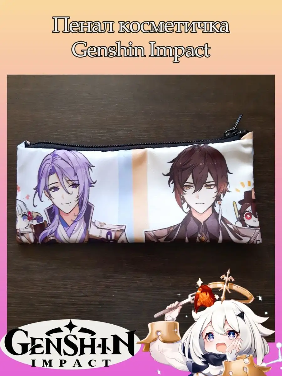 Пенал школьный с большой молнией и с одним вместительным отделением. Изображение из игры Геншин Импакт (Genshin Impact). Принт яркий и четкий, устойчивый к выцветанию и стирке.