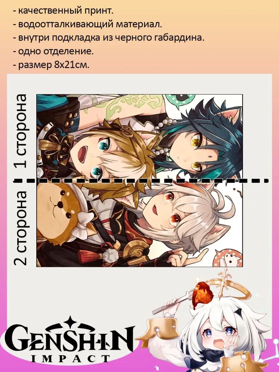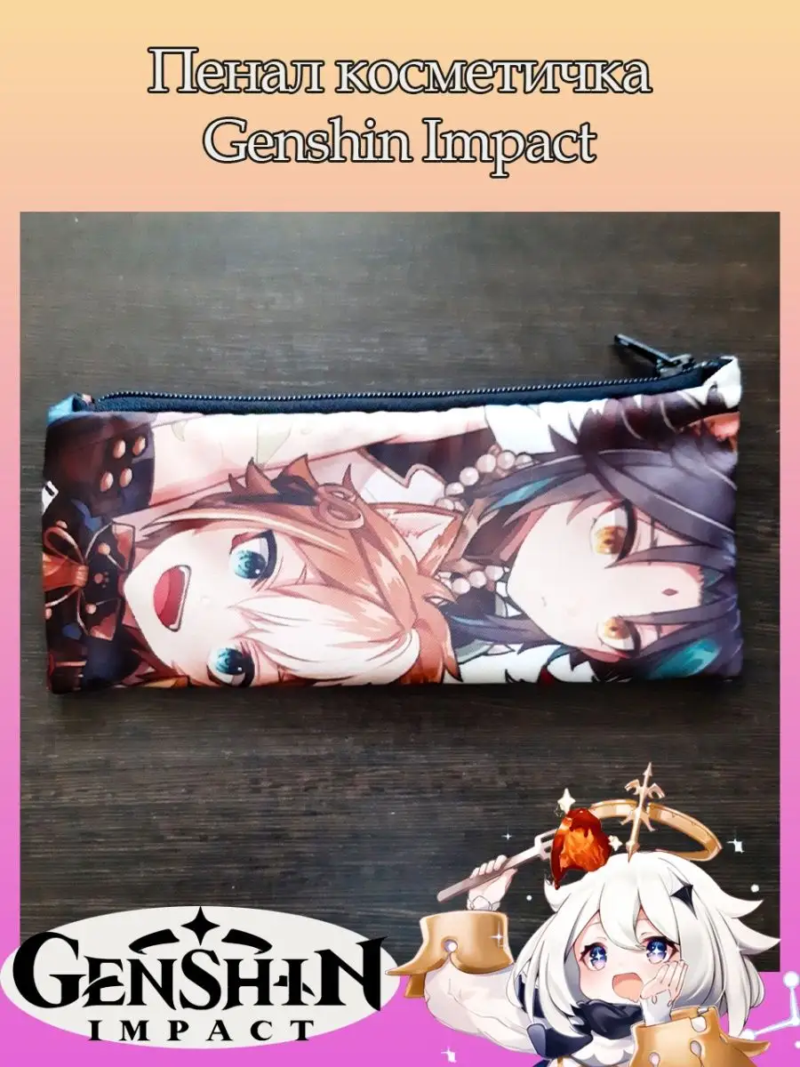Пенал школьный с большой молнией и с одним вместительным отделением. Изображение из игры Геншин Импакт (Genshin Impact). Принт яркий и четкий, устойчивый к выцветанию и стирке.