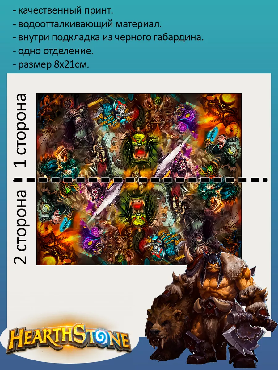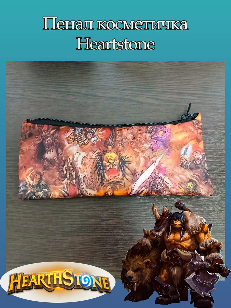 Пенал школьный с большой молнией и с одним вместительным отделением. Изображение из компьютерная игра Херстоун (Hearthstone Warcraft). Принт яркий и четкий, устойчивый к выцветанию и стирке.