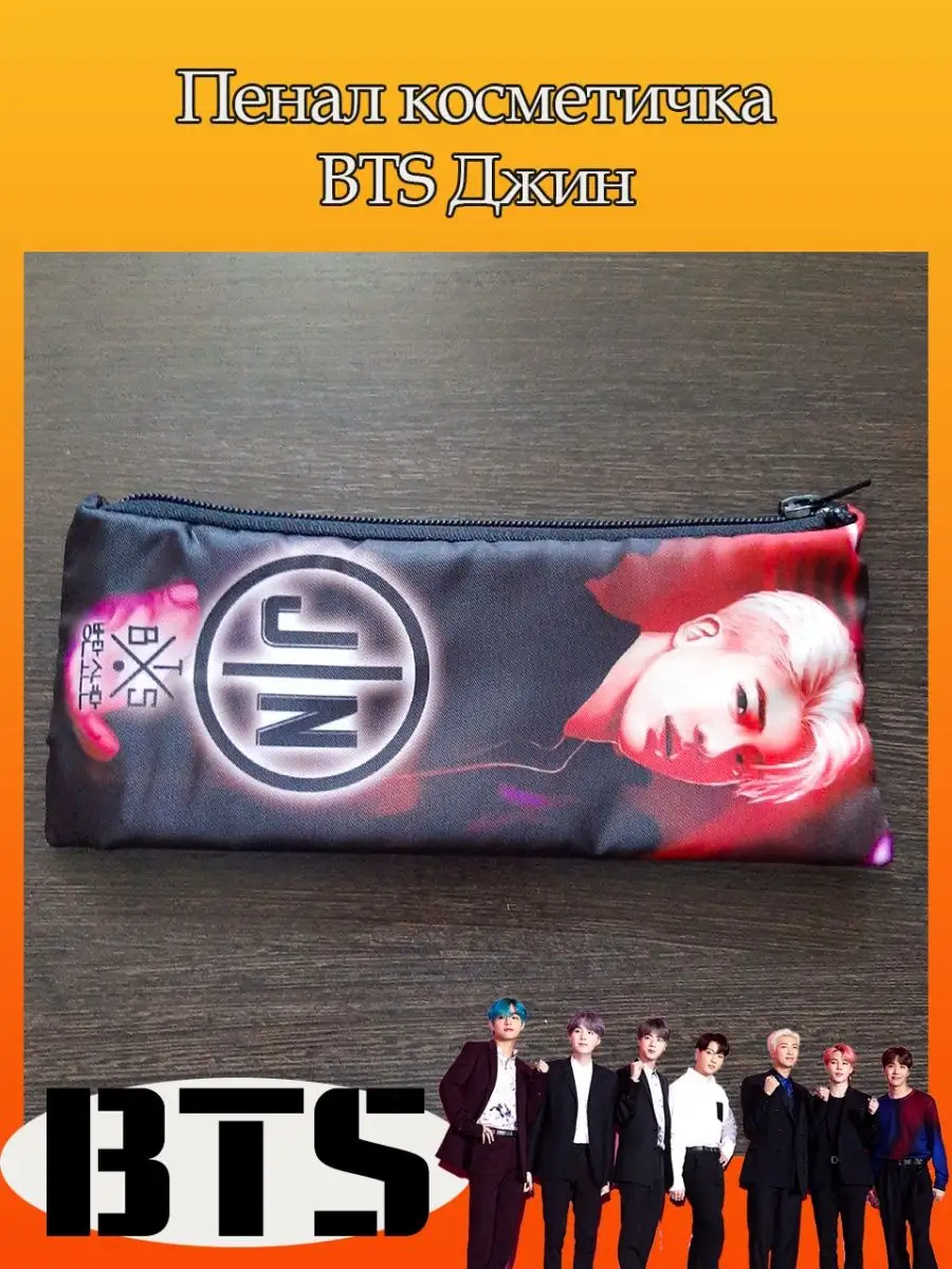 Пенал школьный с большой молнией и с одним вместительным отделением. Изображение с K-pop группой БТС (BTS). Принт яркий и четкий, устойчивый к выцветанию и стирке.