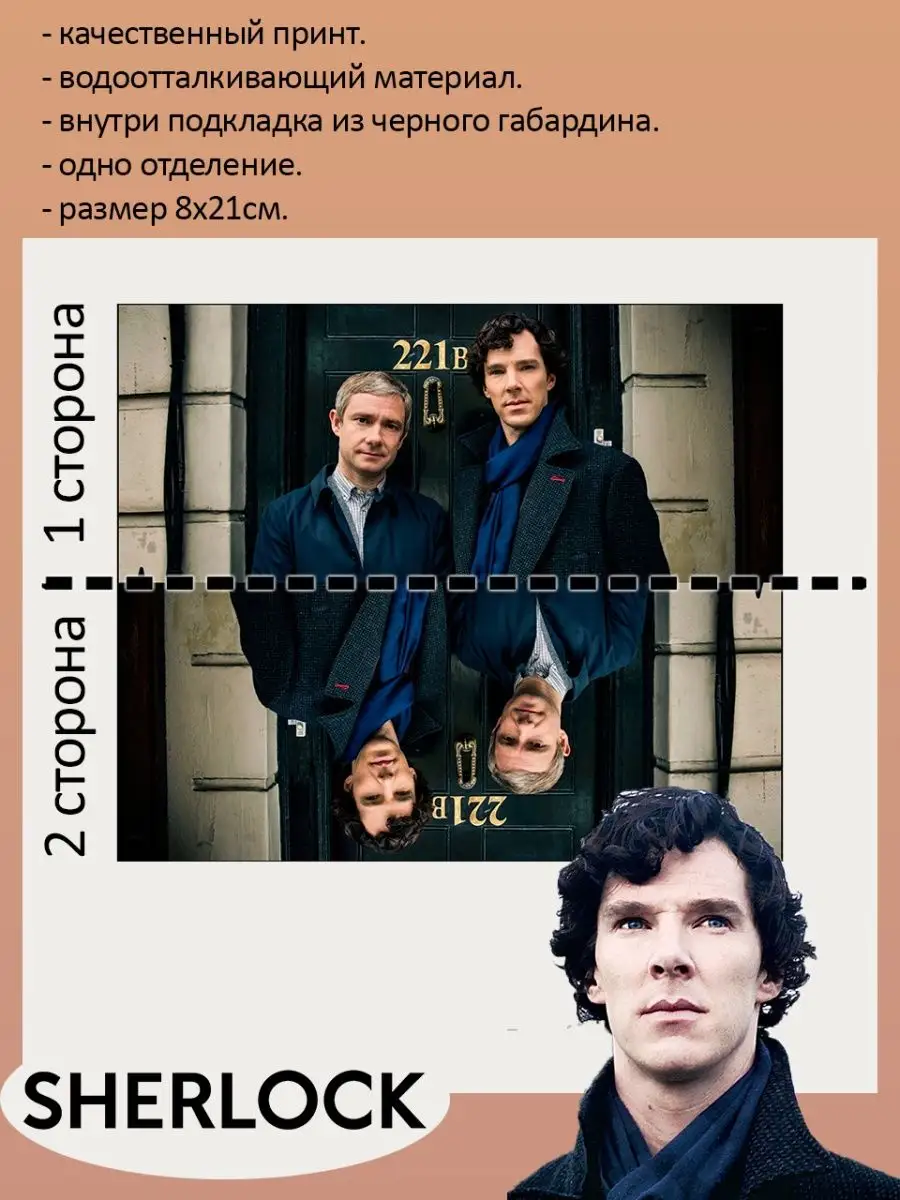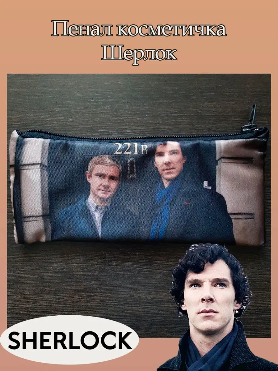 Пенал школьный с большой молнией и с одним вместительным отделением. Изображение из сериала Шерлок (Sherlock). Принт яркий и четкий, устойчивый к выцветанию и стирке.