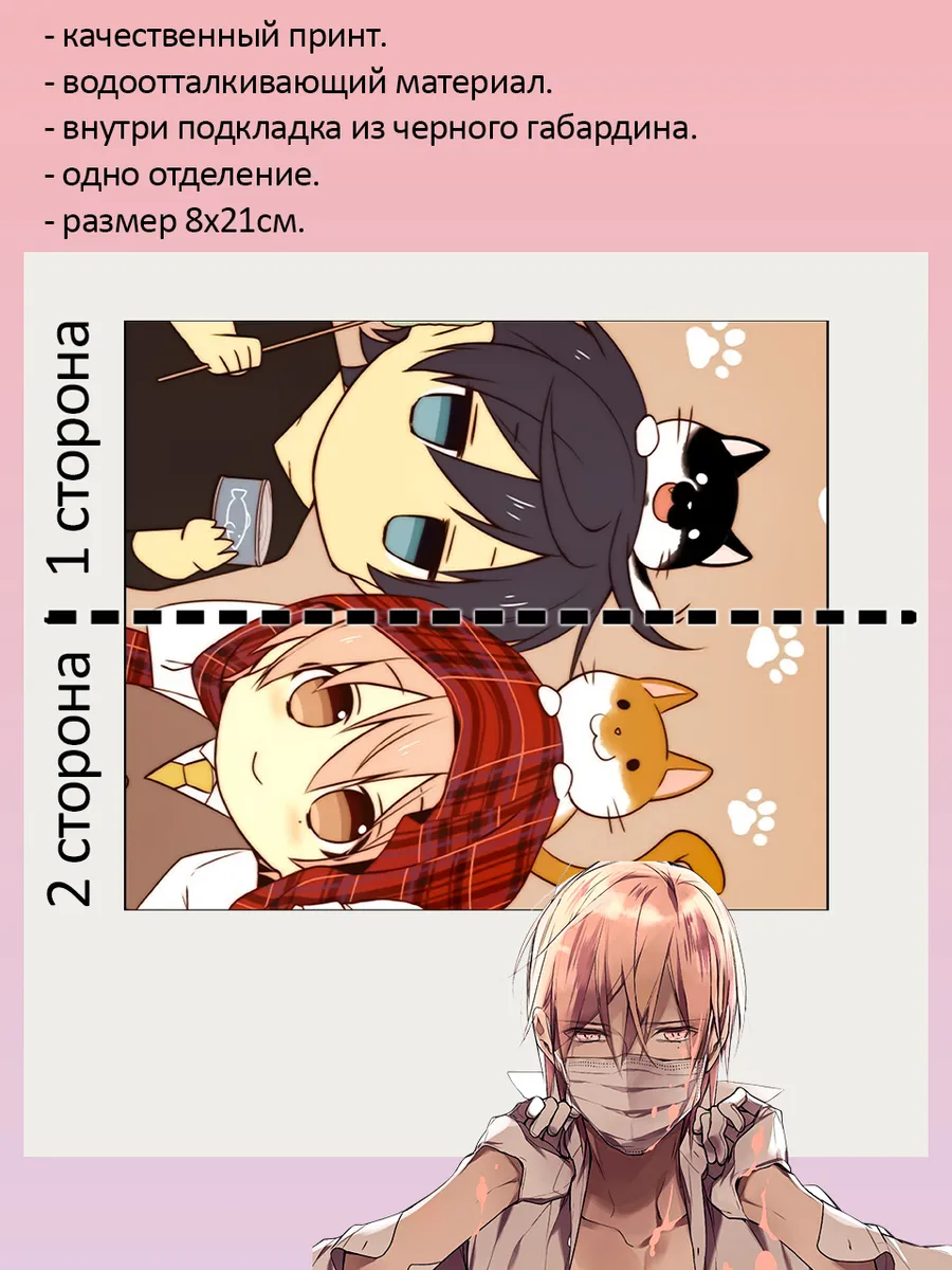 Пенал школьный с большой молнией и с одним вместительным отделением. Изображение из аниме До 10 (Ten Count). Принт яркий и четкий, устойчивый к выцветанию и стирке.