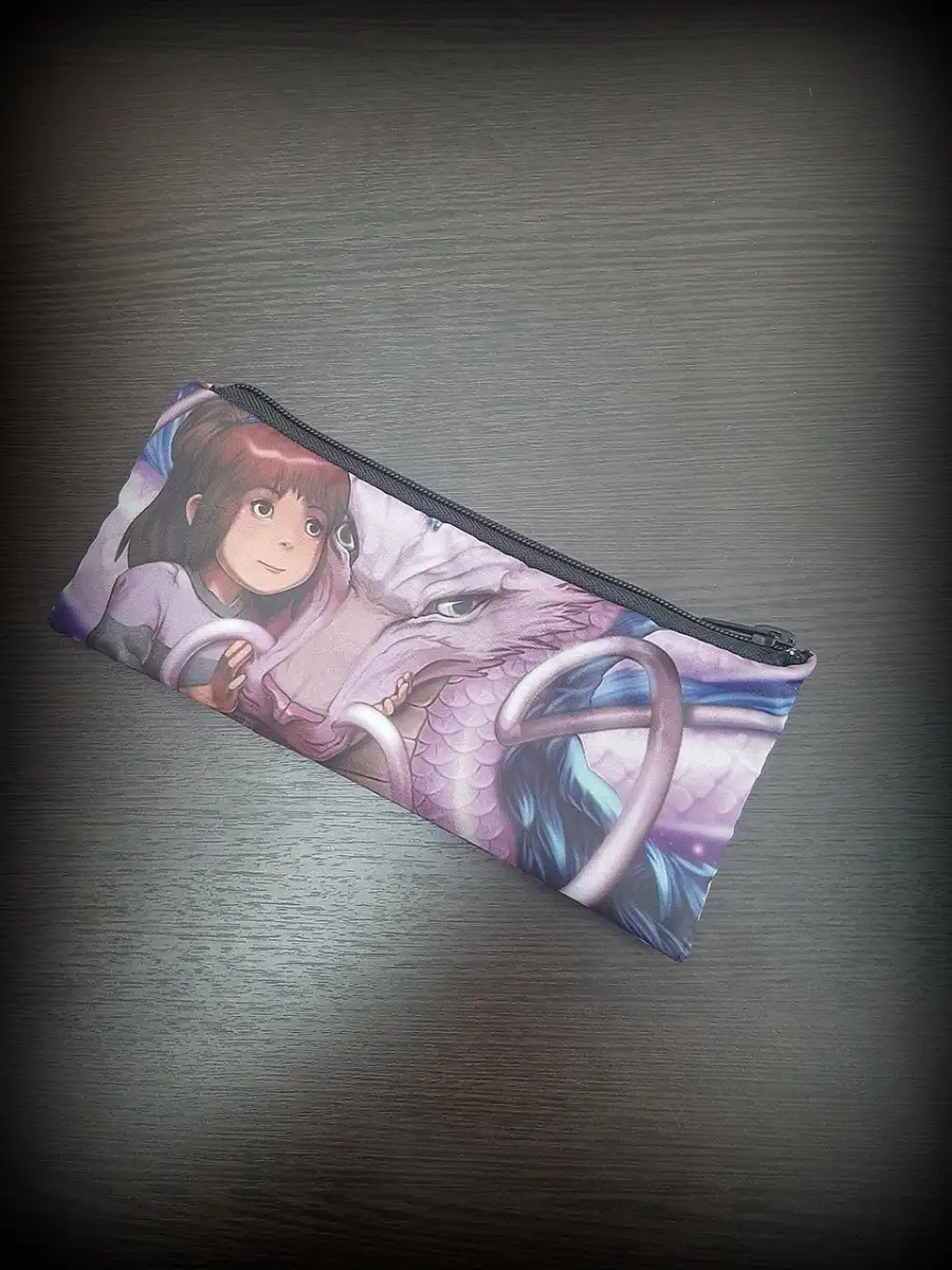 Пенал школьный с большой молнией и с одним вместительным отделением. Изображение аниме Унесенные призраками ( Spirited Away ). Принт яркий и четкий, устойчивый к выцветанию и стирке.
