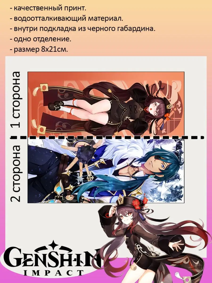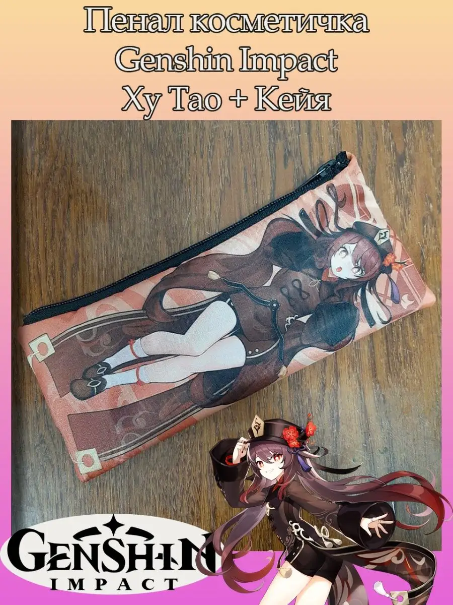 Пенал школьный с большой молнией и с одним вместительным отделением. Изображение из игры Геншин Импакт (Genshin Impact). Принт яркий и четкий, устойчивый к выцветанию и стирке.