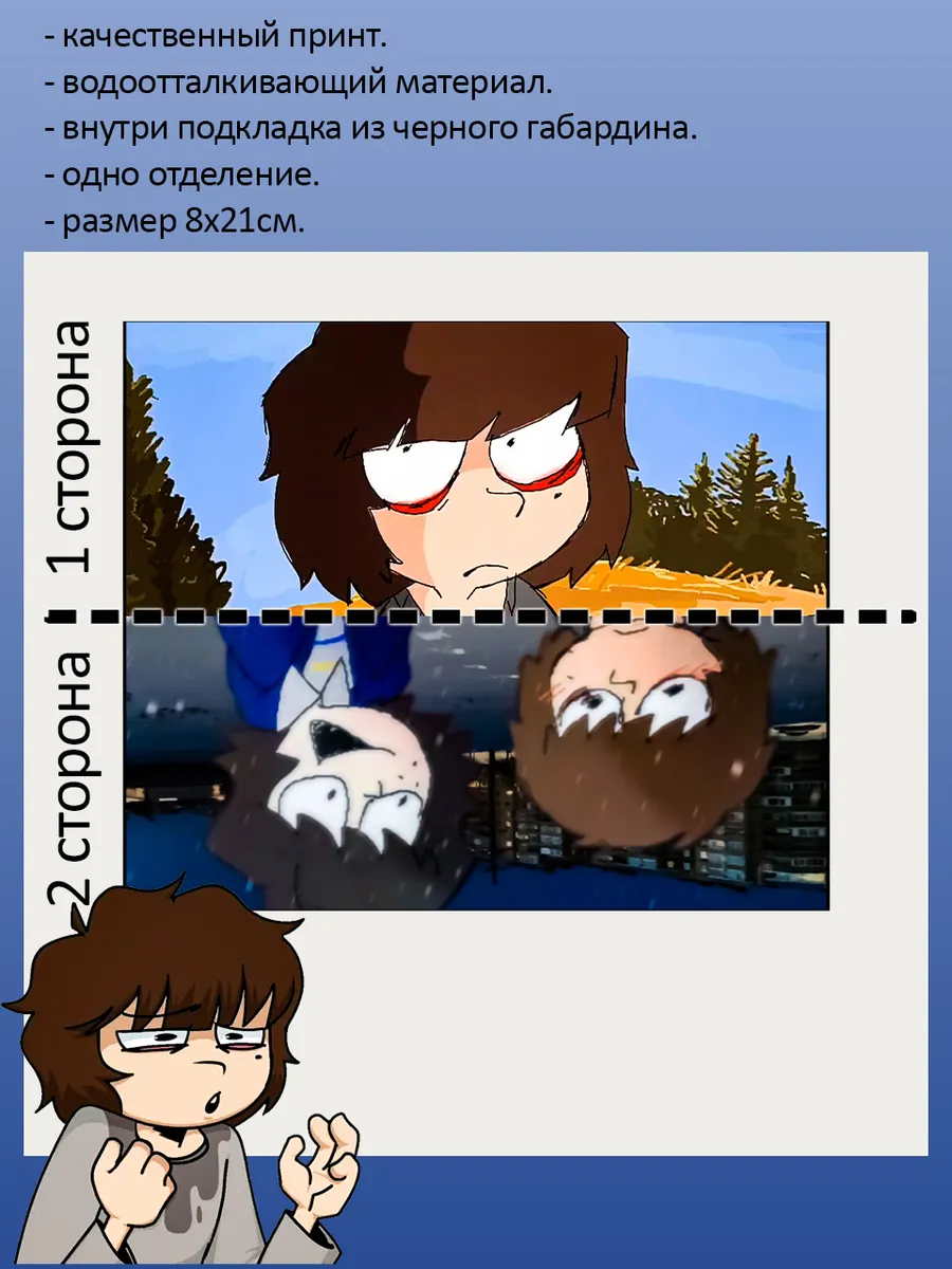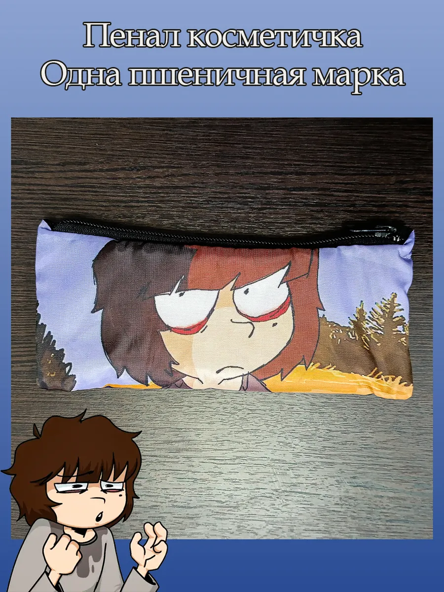 Пенал школьный с большой молнией и с одним вместительным отделением. Изображение из визуальной новеллы Одна Пшеничная Марка (one wheat mark). Принт яркий и четкий, устойчивый к выцветанию и стирке.