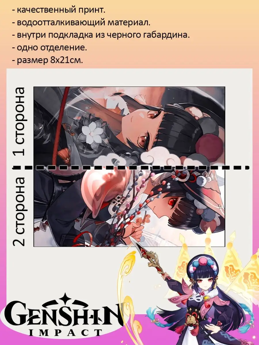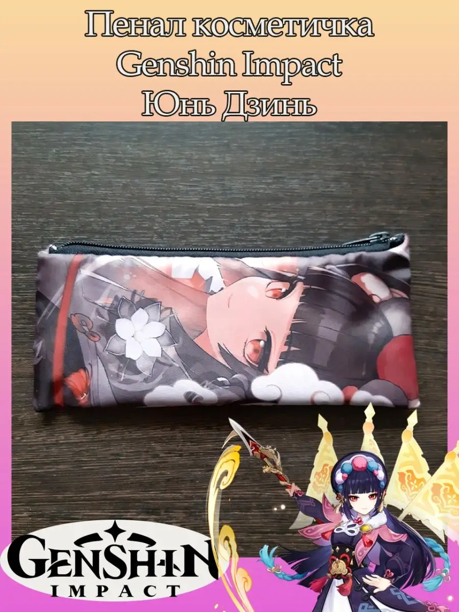 Пенал школьный с большой молнией и с одним вместительным отделением. Изображение из игры Геншин Импакт (Genshin Impact). Принт яркий и четкий, устойчивый к выцветанию и стирке.