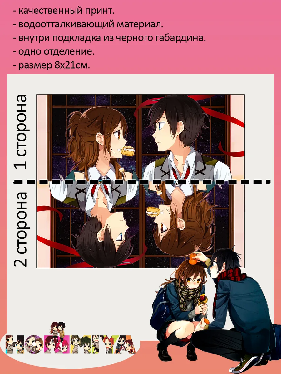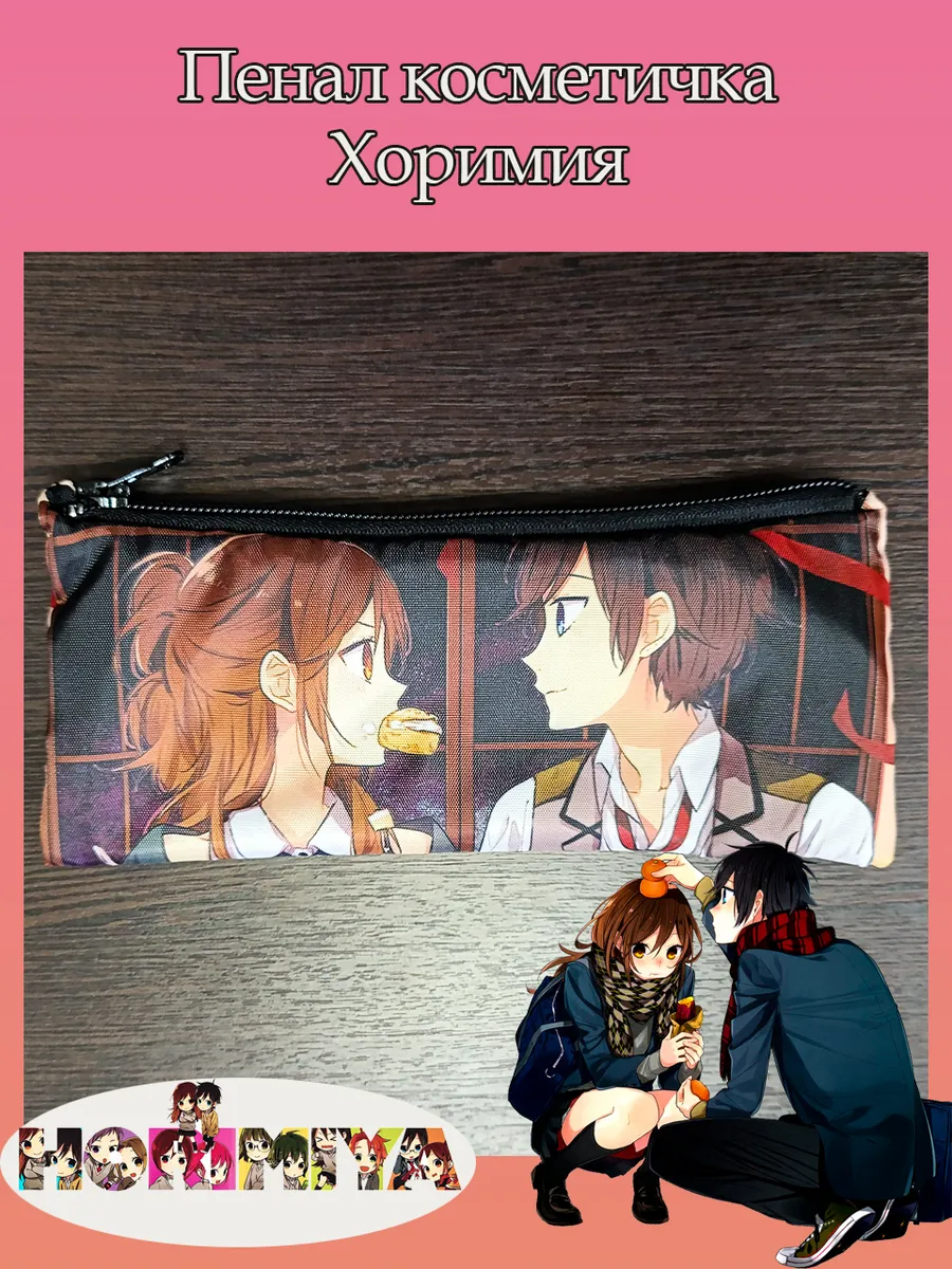 Пенал школьный с большой молнией и с одним вместительным отделением. Изображение из аниме Хоримия (Horimiya). Принт яркий и четкий, устойчивый к выцветанию и стирке.