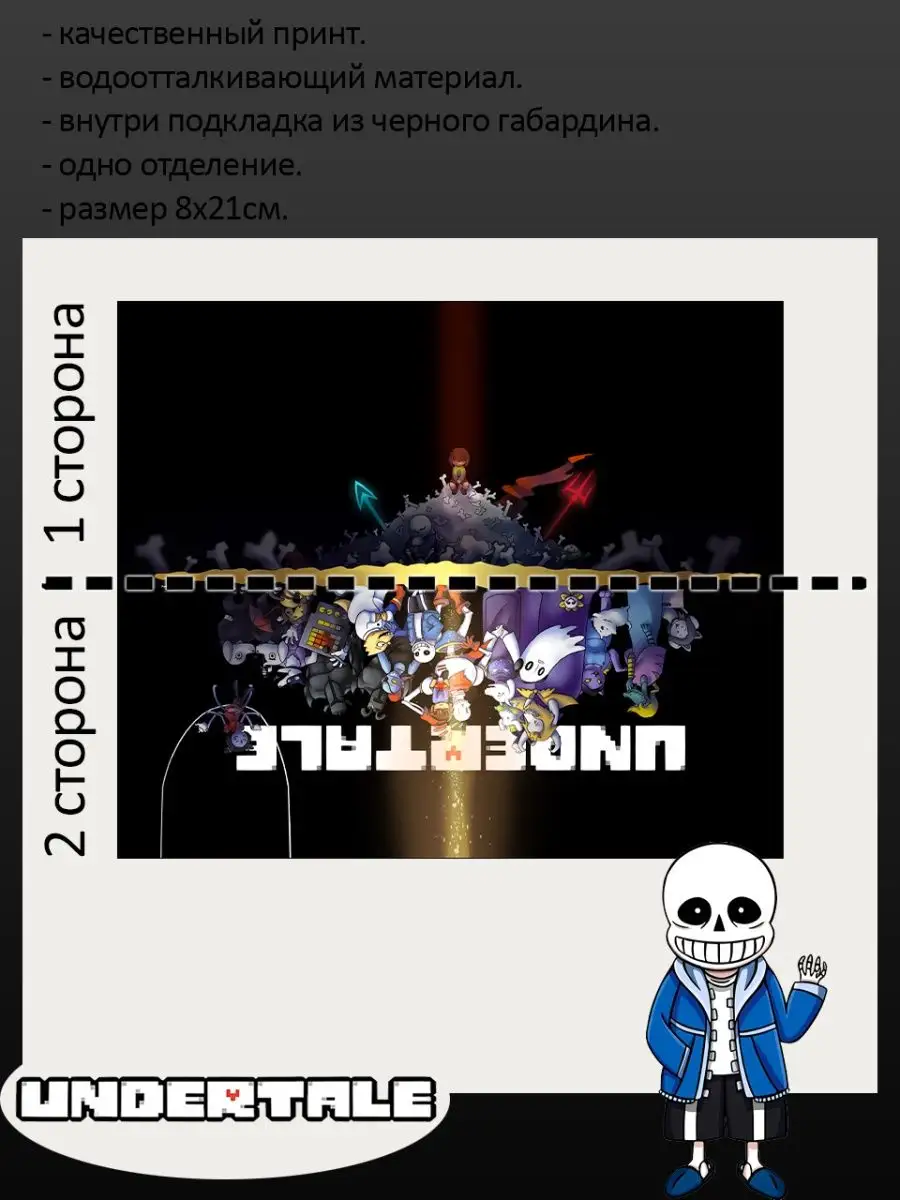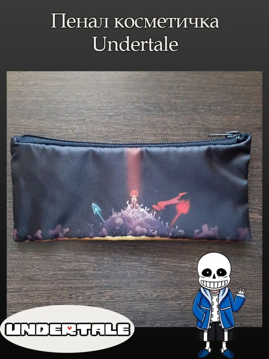 Пенал школьный с большой молнией и с одним вместительным отделением. Изображение из игры Андертейл (Undertale). Принт яркий и четкий, устойчивый к выцветанию и стирке.