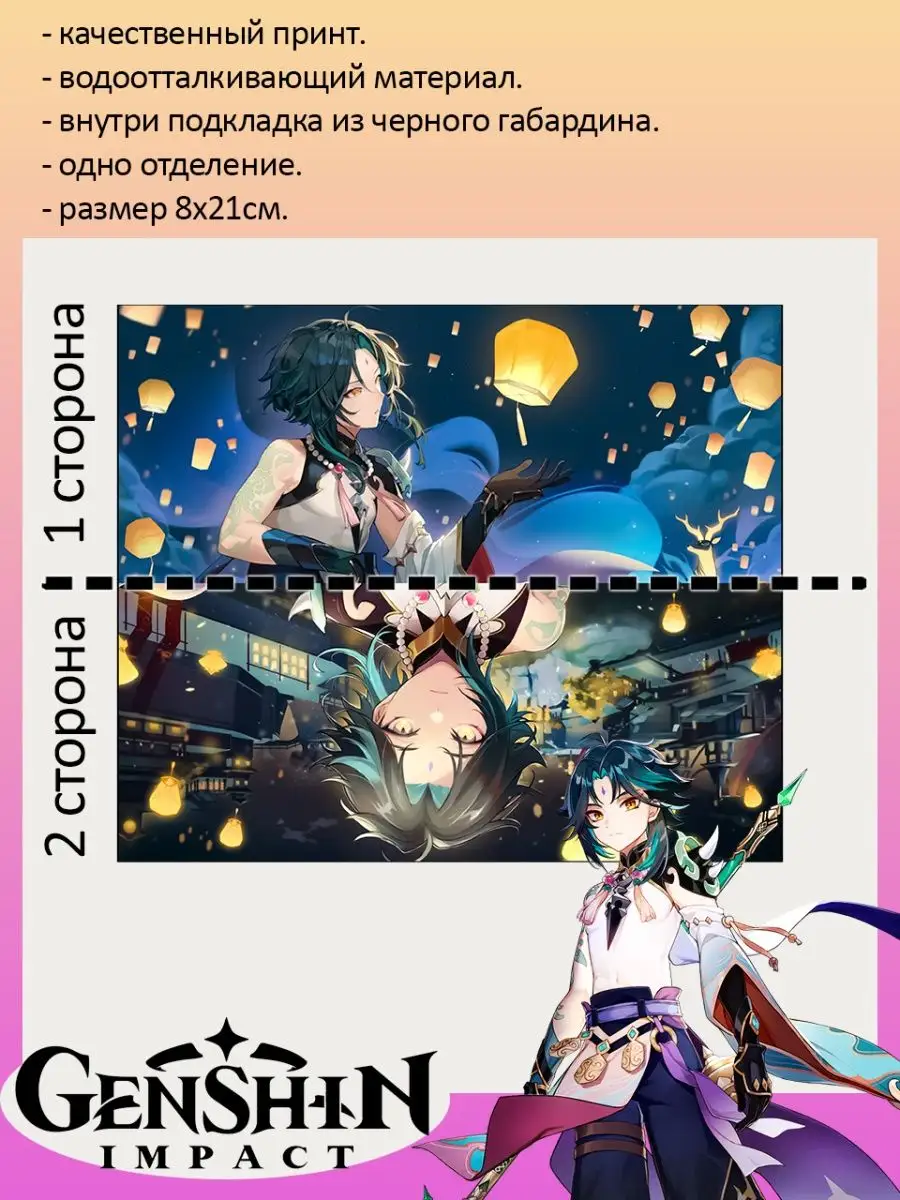 Пенал школьный с большой молнией и с одним вместительным отделением. Изображение из игры Геншин Импакт (Genshin Impact). Принт яркий и четкий, устойчивый к выцветанию и стирке.