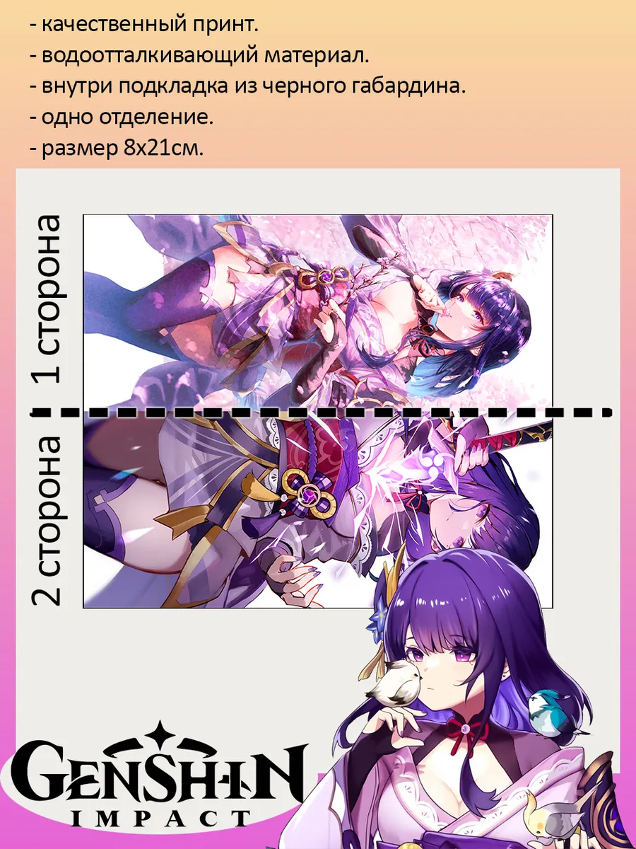Пенал школьный с большой молнией и с одним вместительным отделением. Изображение из игры Геншин Импакт (Genshin Impact). Принт яркий и четкий, устойчивый к выцветанию и стирке.