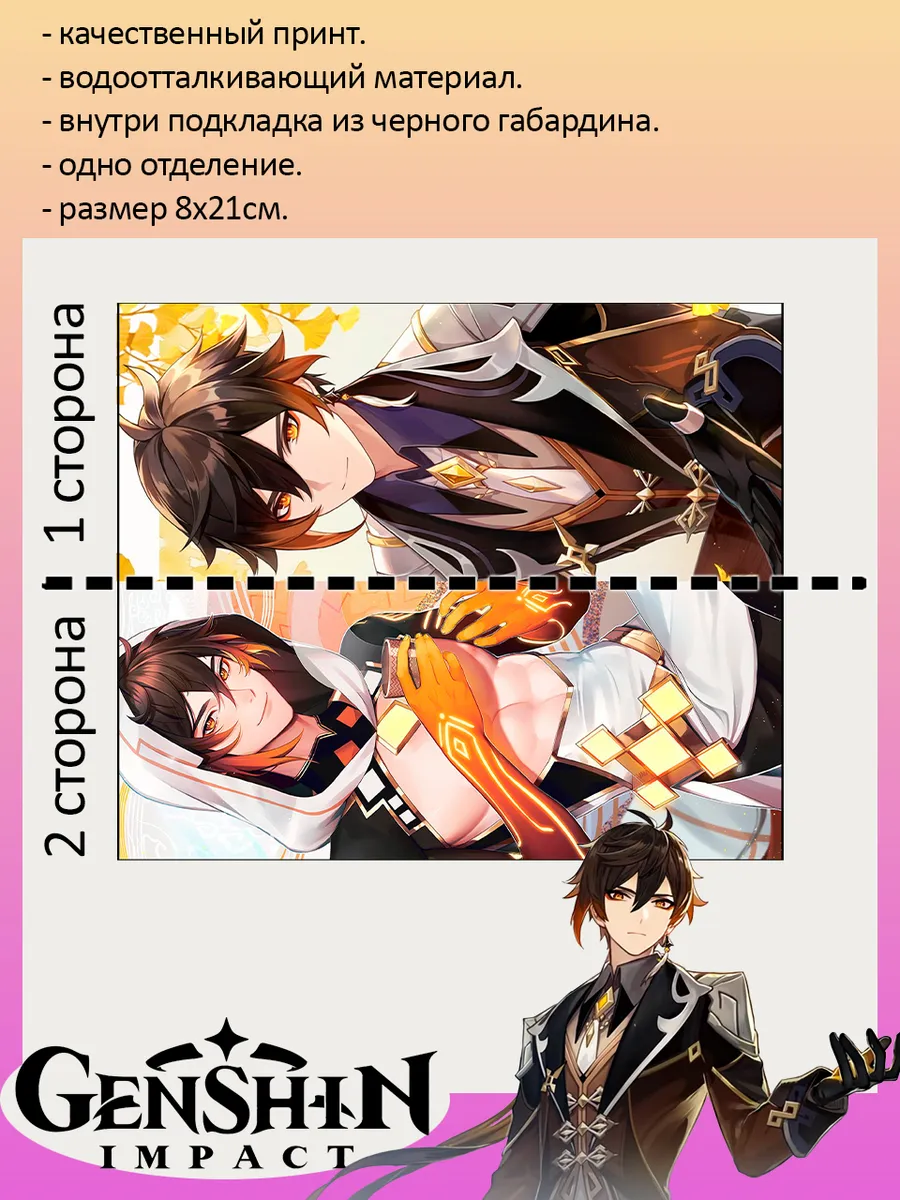 Пенал школьный с большой молнией и с одним вместительным отделением. Изображение из игры Геншин Импакт ( Genshin Impact ). Принт яркий и четкий, устойчивый к выцветанию и стирке.