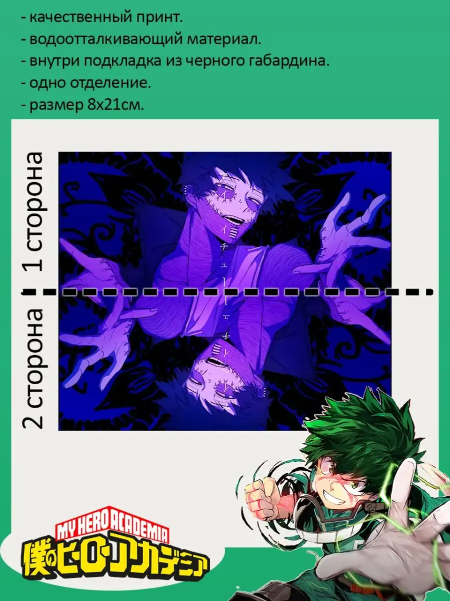 Пенал школьный с большой молнией и с одним вместительным отделением. Изображение из аниме Моя геройская академия (Boku no Hero Academia). Принт яркий и четкий, устойчивый к выцветанию и стирке.