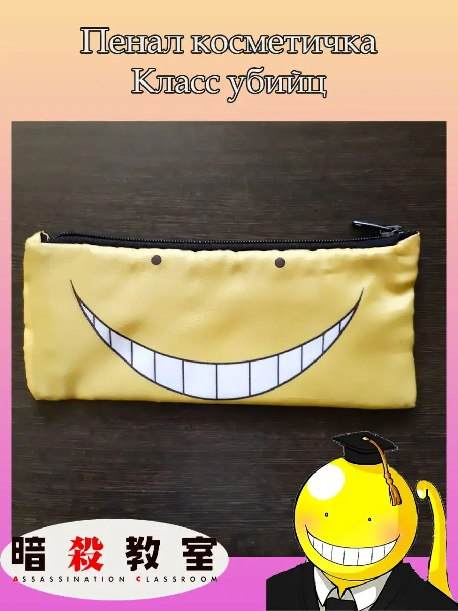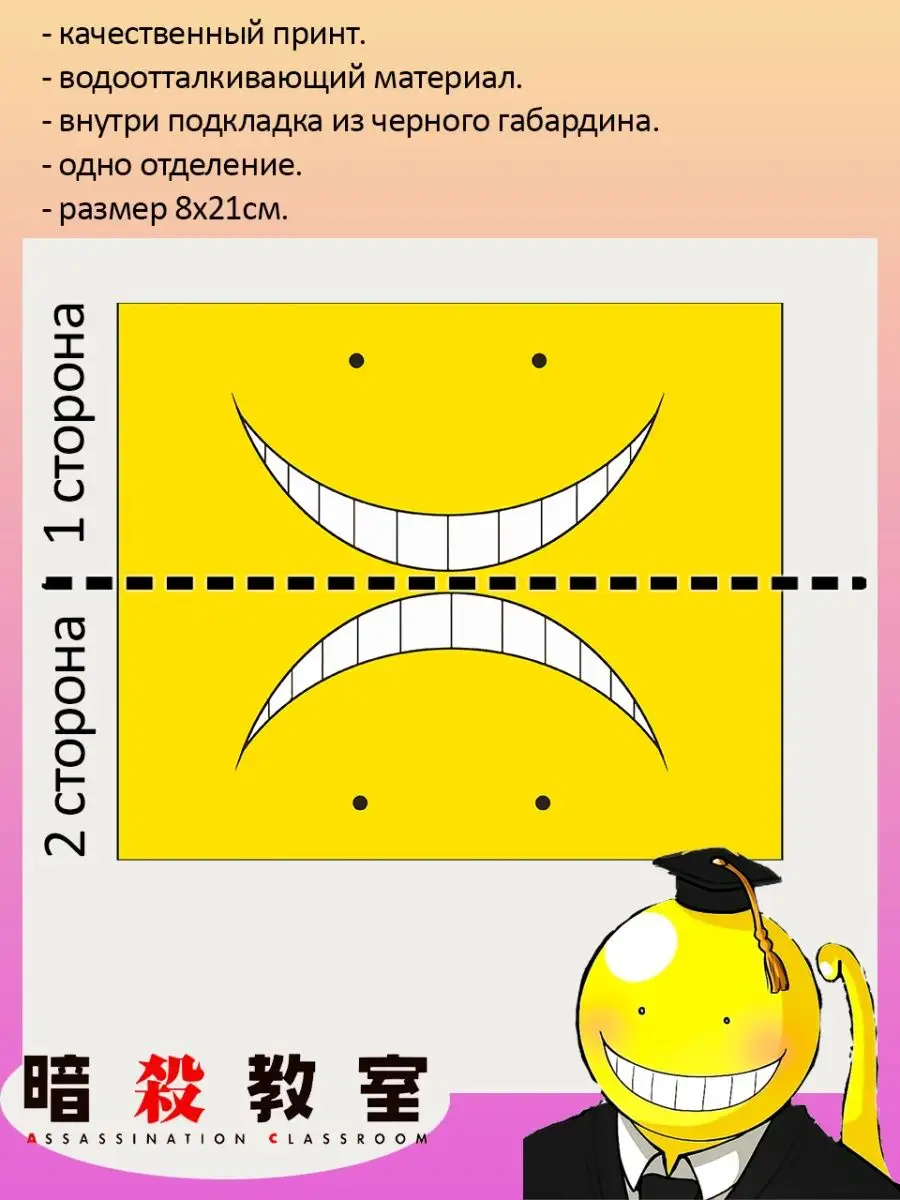 Пенал школьный с большой молнией и с одним вместительным отделением. Изображение из аниме Класс убийц (Assassination Classroom). Принт яркий и четкий, устойчивый к выцветанию и стирке.