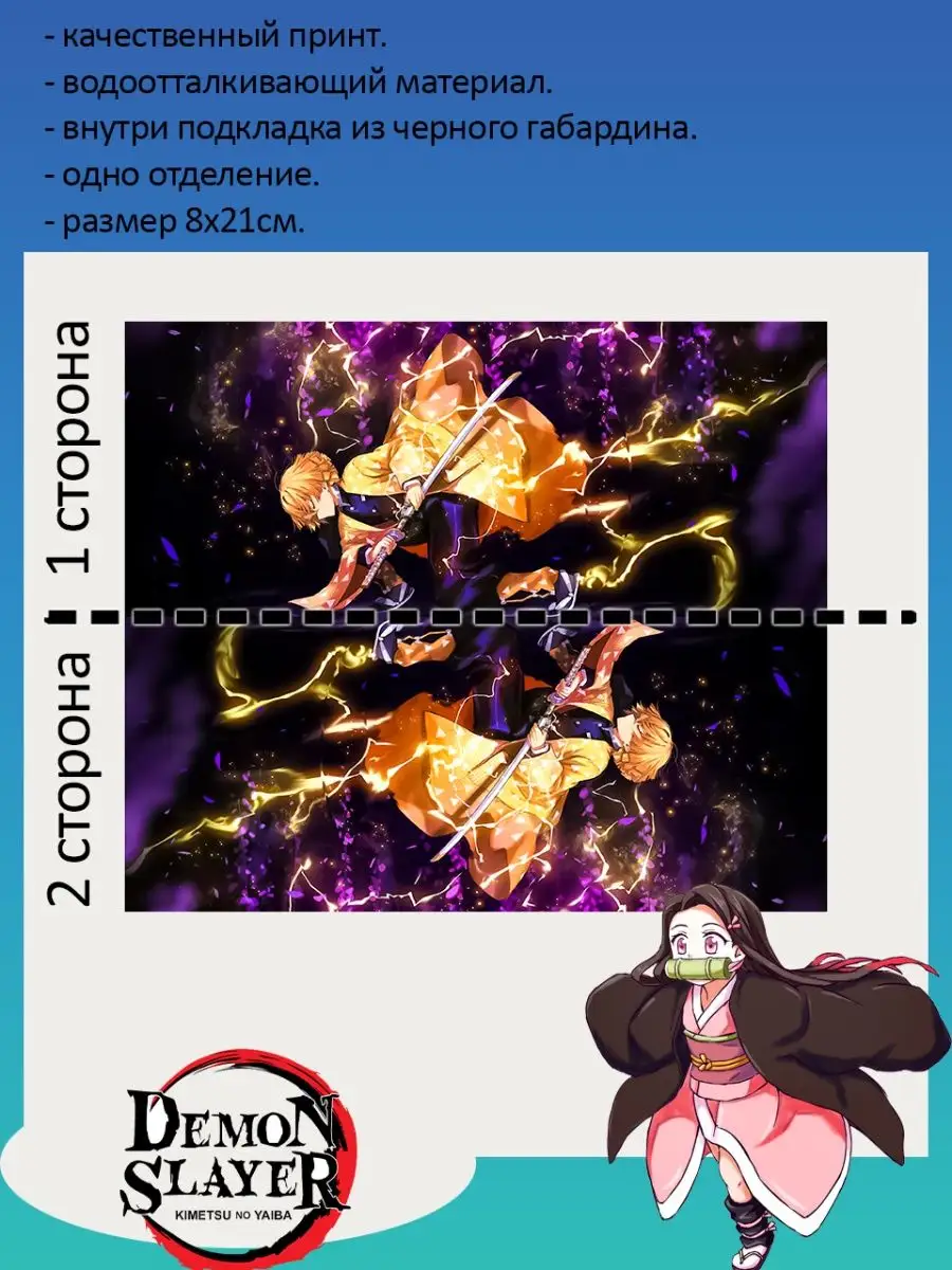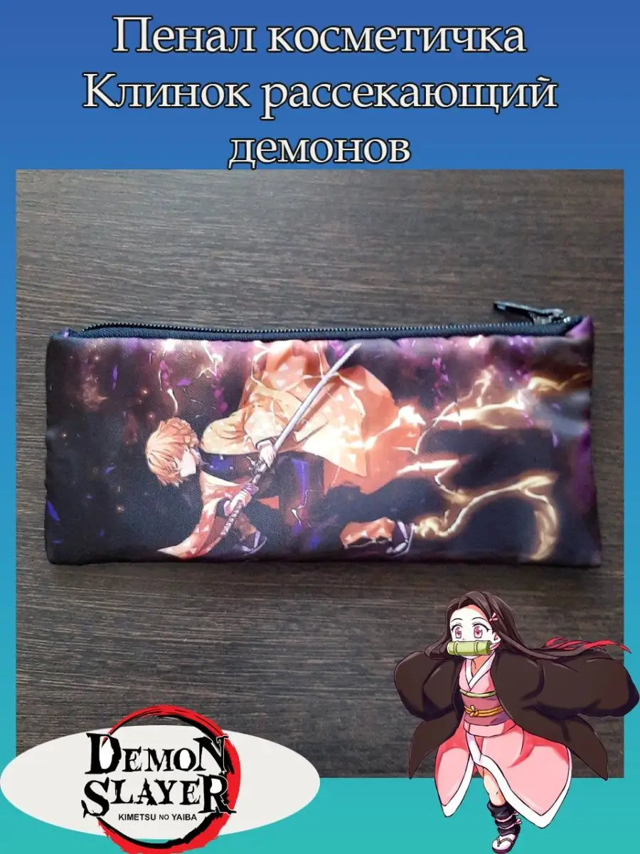 Пенал школьный с большой молнией и с одним вместительным отделением. Изображение из аниме Клинок рассекающий демонов (Demon Slayer: Kimetsu no Yaiba). Принт яркий и четкий, устойчивый к выцветанию и стирке.
