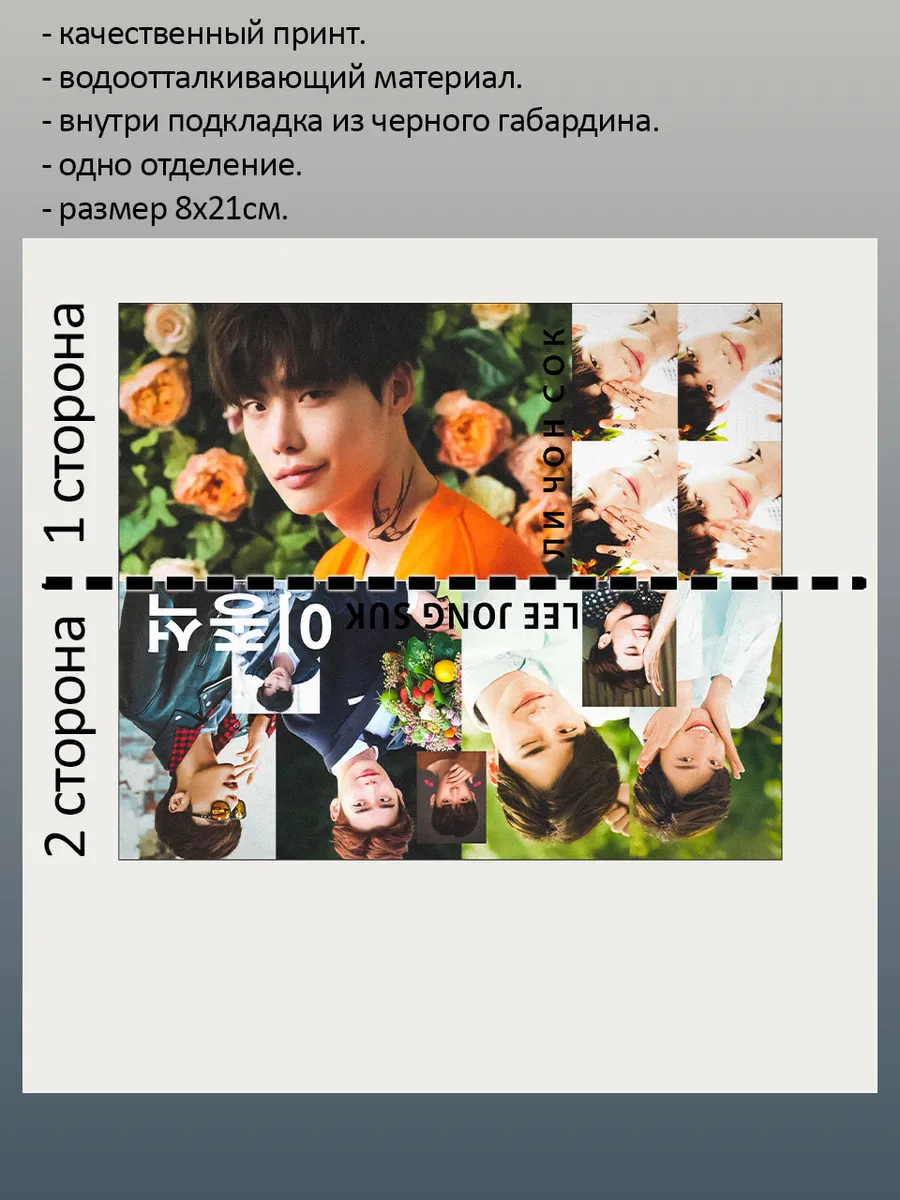 Пенал школьный с большой молнией и с одним вместительным отделением. Изображение - актер дорам Ли Чон Сок (Lee Jong Suk). Принт яркий и четкий, устойчивый к выцветанию и стирке.