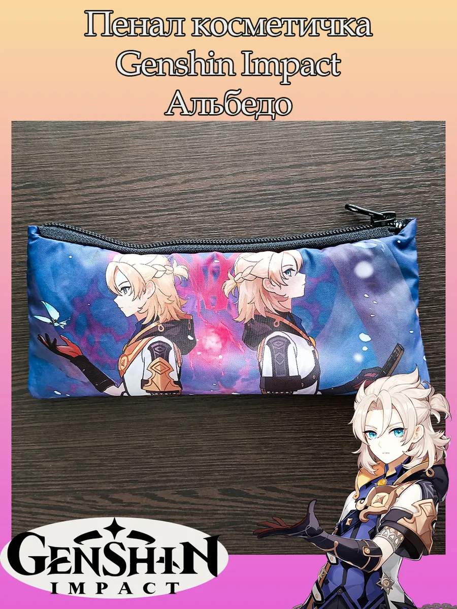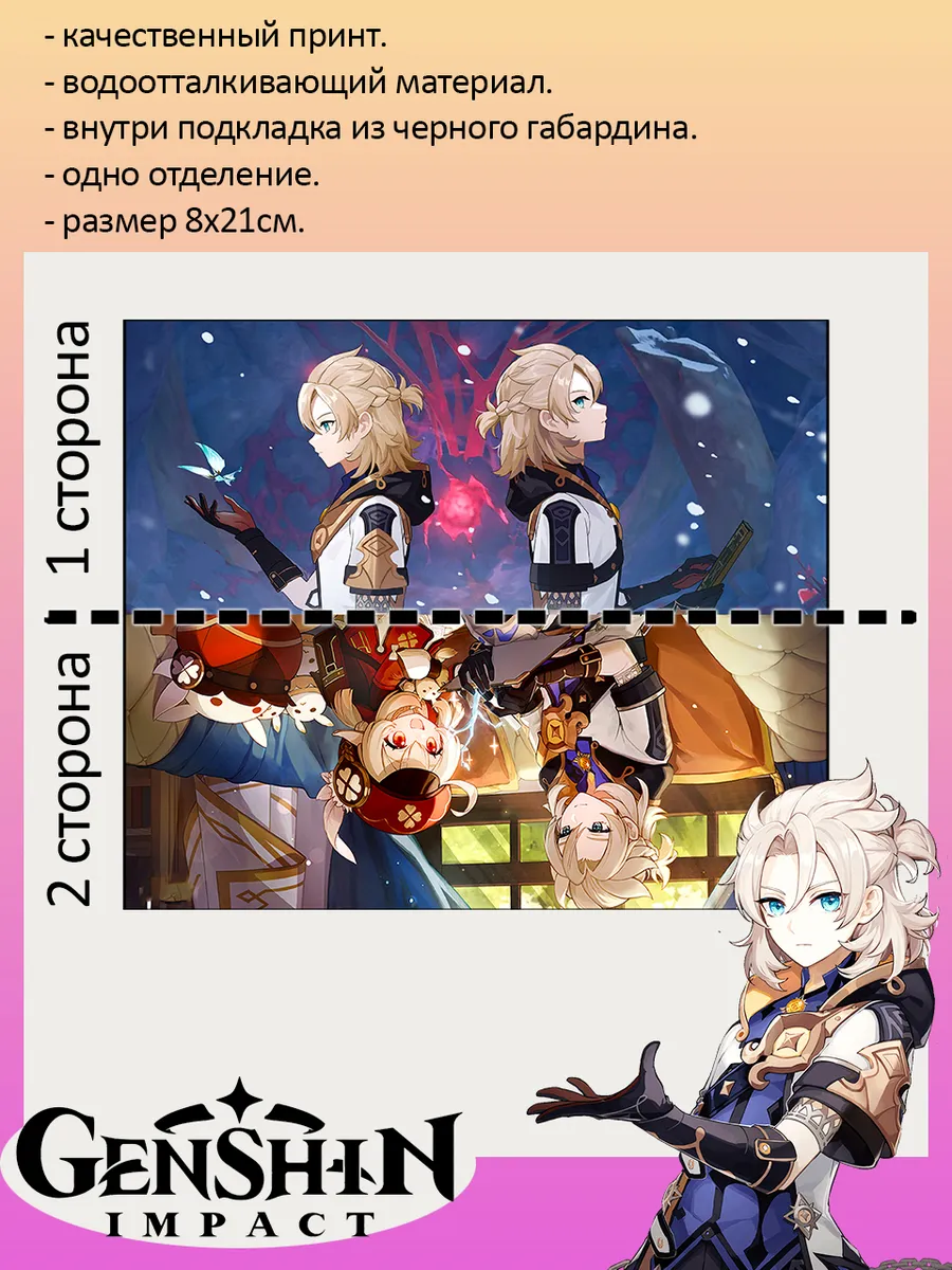 Пенал школьный с большой молнией и с одним вместительным отделением. Изображение из игры Геншин Импакт (Genshin Impact). Принт яркий и четкий, устойчивый к выцветанию и стирке.