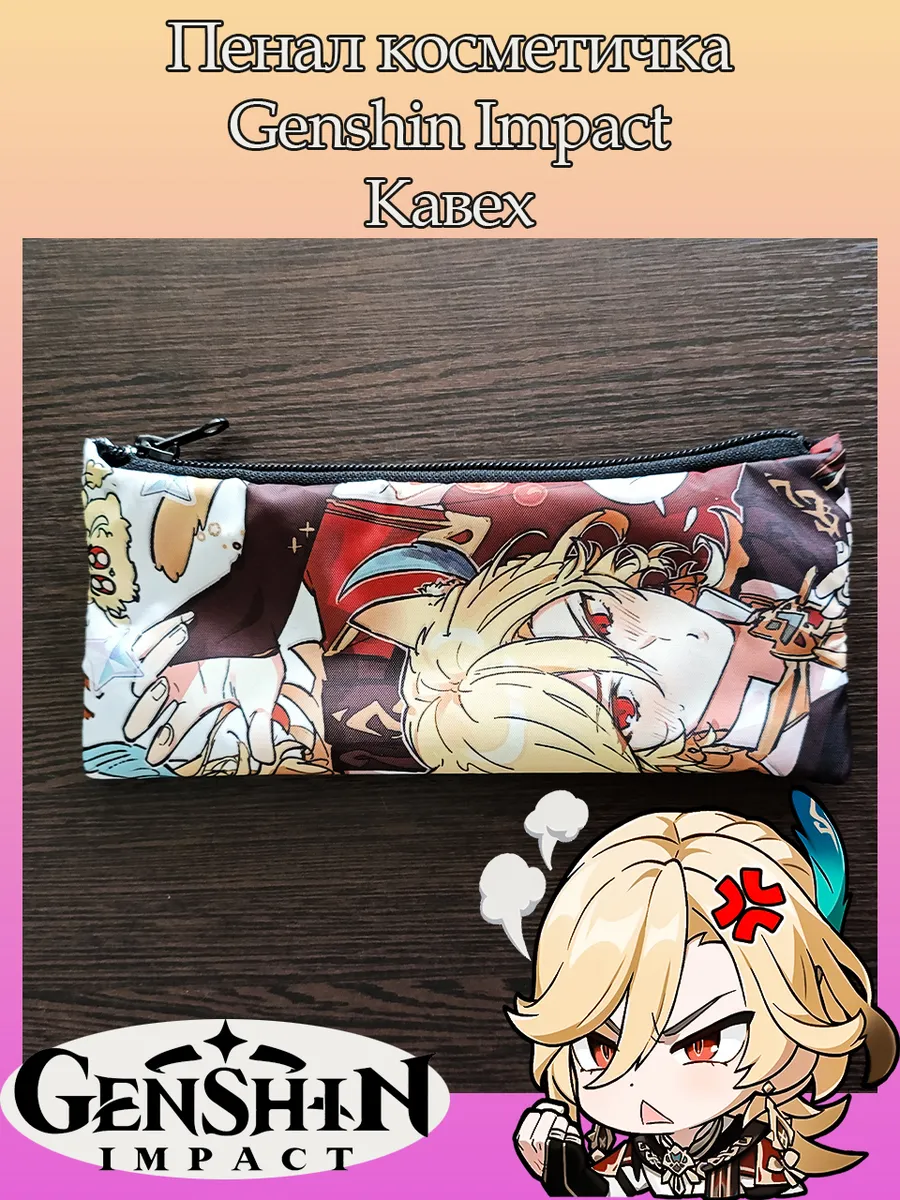 Пенал школьный с большой молнией и с одним вместительным отделением. Изображение из игры Геншин Импакт (Genshin Impact). Принт яркий и четкий, устойчивый к выцветанию и стирке.