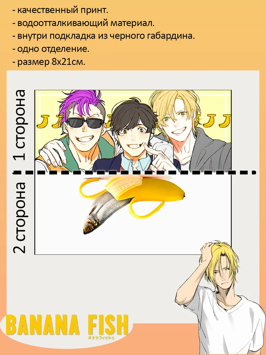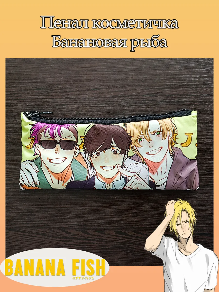 Пенал-косметичка HoshiBoshi - это стильное и практичное решение для хранения канцелярских принадлежностей или косметики. Изображение из аниме Банановая рыба ( Banana Fish ).