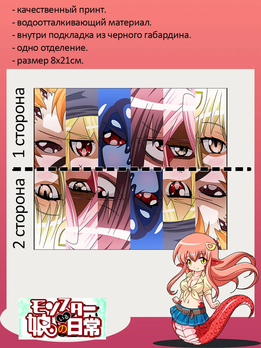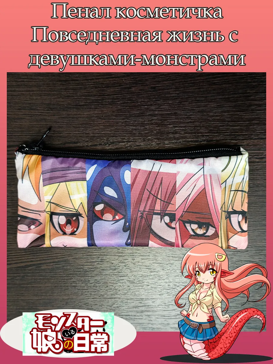 Пенал школьный с большой молнией и с одним вместительным отделением. Изображение из аниме Повседневная жизнь с Девушками Монстрами (Everyday Life with Monster Girls). Принт яркий и четкий, устойчивый к выцветанию и стирке.