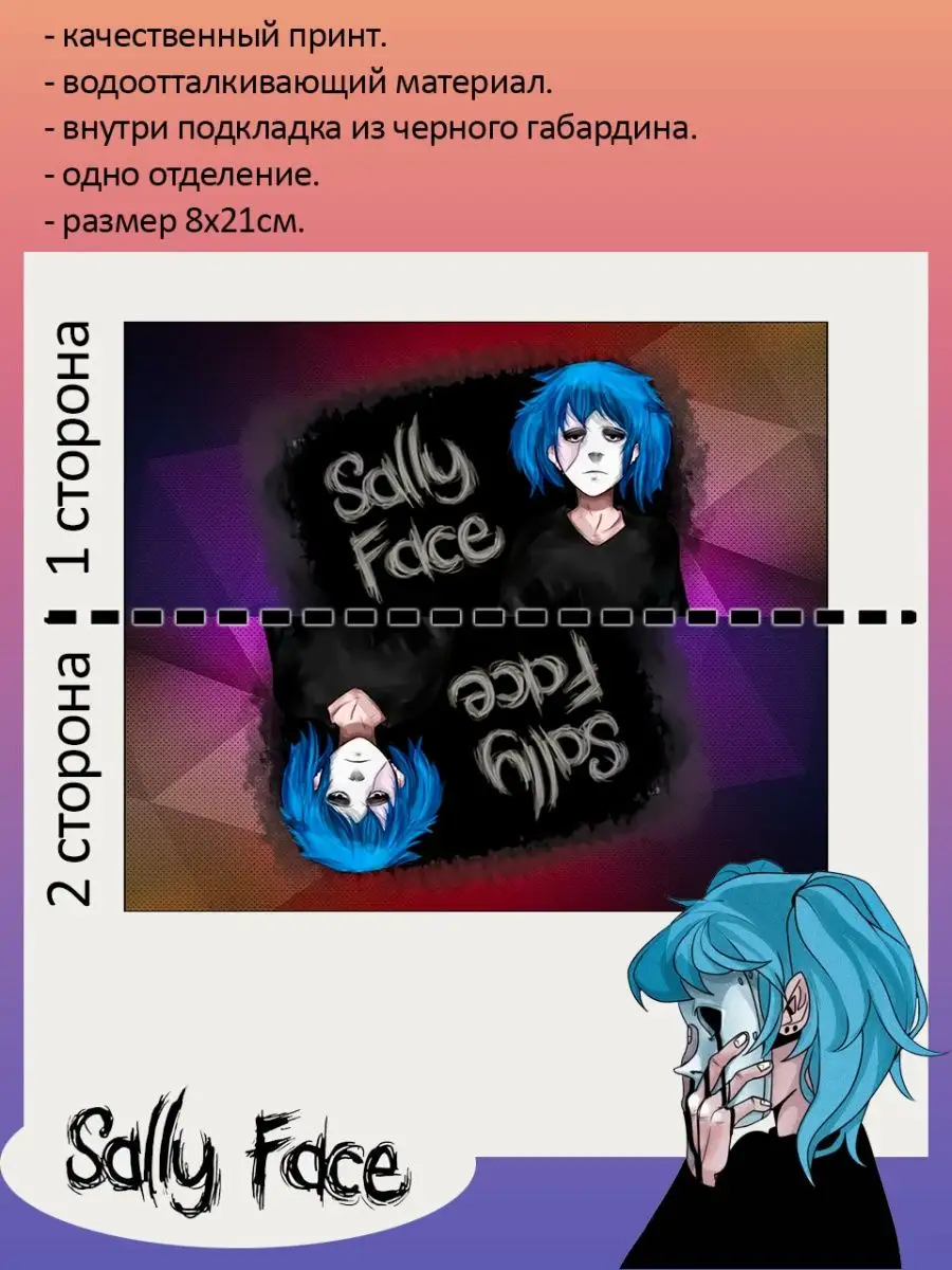 Пенал школьный с большой молнией и с одним вместительным отделением. Изображение из игры Салли Фэйс (Sally Face). Принт яркий и четкий, устойчивый к выцветанию и стирке.