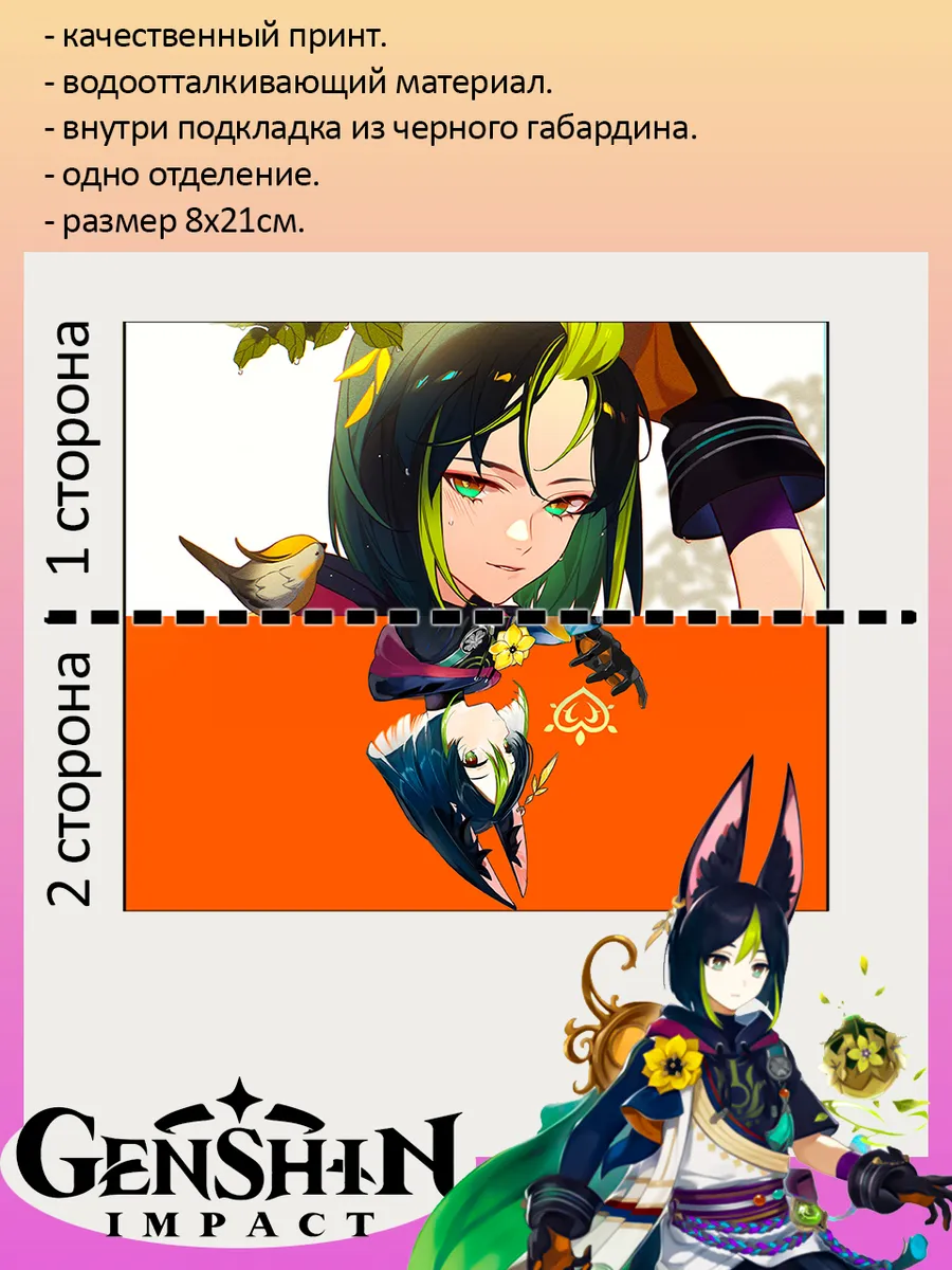 Пенал школьный с большой молнией и с одним вместительным отделением. Изображение из игры Геншин Импакт ( Genshin Impact ). Принт яркий и четкий, устойчивый к выцветанию и стирке.