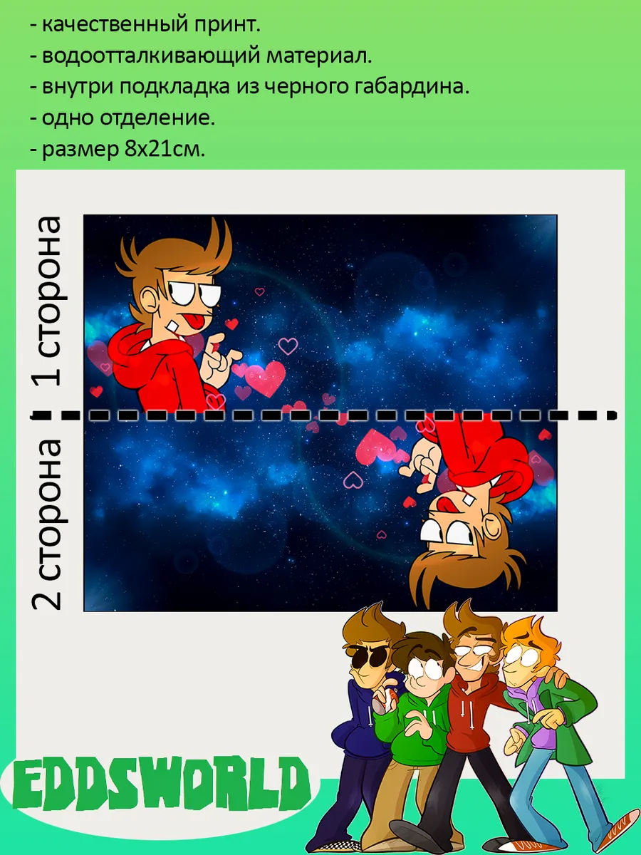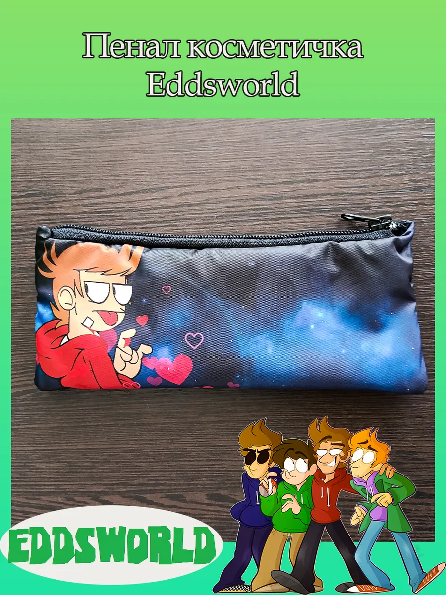 Пенал школьный с большой молнией и с одним вместительным отделением. Изображение из веб-сериала Эддсворлд (Eddsworld). Принт яркий и четкий, устойчивый к выцветанию и стирке.