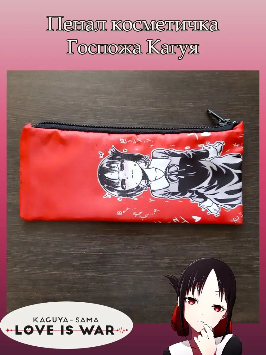 Пенал школьный с большой молнией и с одним вместительным отделением. Изображение из аниме Госпожа Кагуя в любви, как на войне (Kaguya-sama: Love Is War). Принт яркий и четкий, устойчивый к выцветанию и стирке.