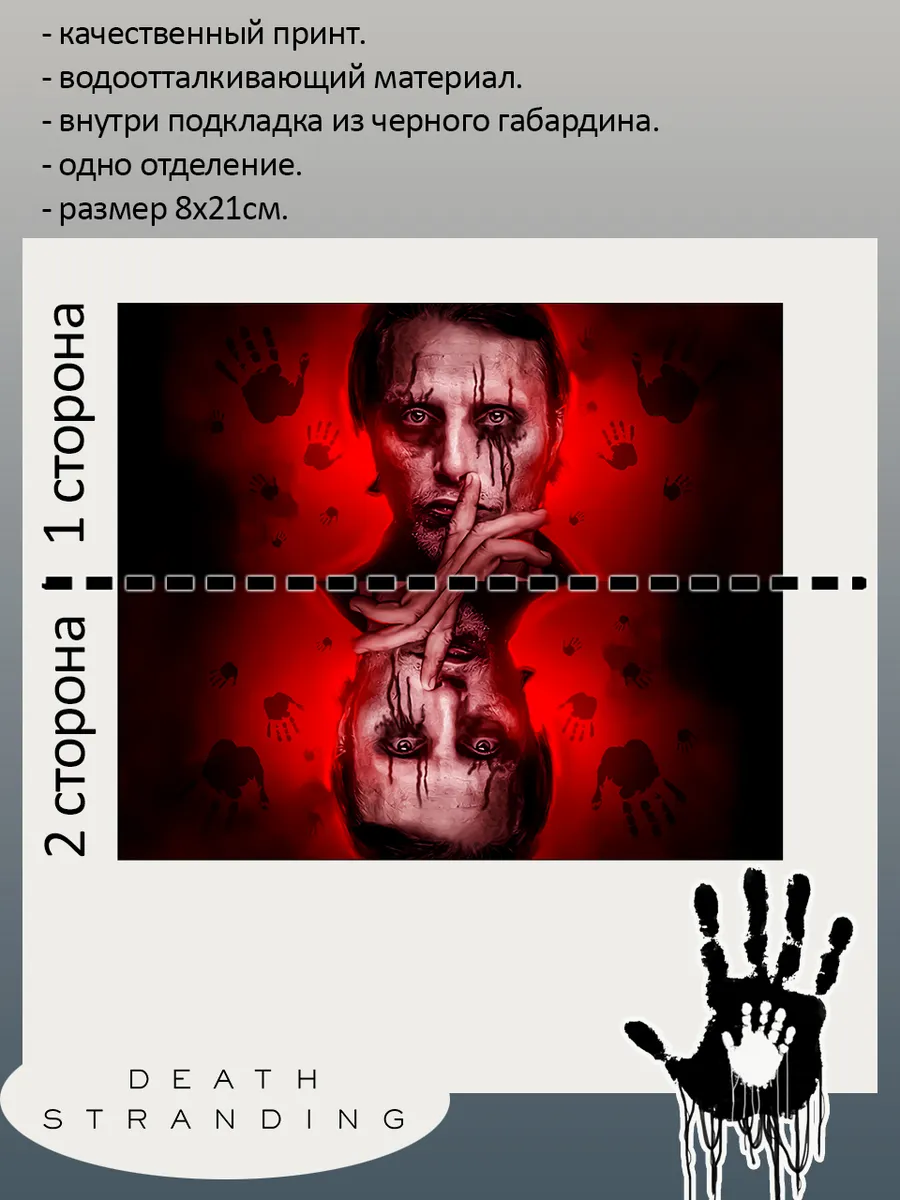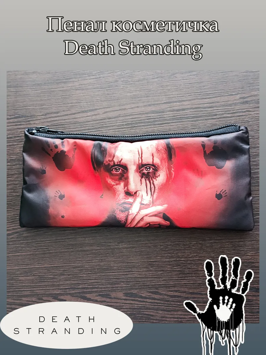 Пенал школьный с большой молнией и с одним вместительным отделением. Изображение из игры Дез Стрэндинг (Death Stranding). Принт яркий и четкий, устойчивый к выцветанию и стирке.