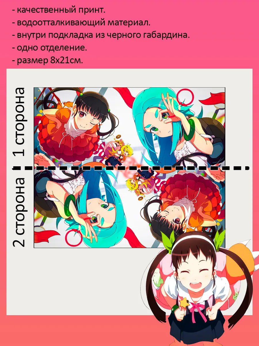 Пенал-косметичка HoshiBoshi - это стильное и практичное решение для хранения канцелярских принадлежностей или косметики. Изображение из аниме Моногатари Истории Монстров ( Monogatari ).
