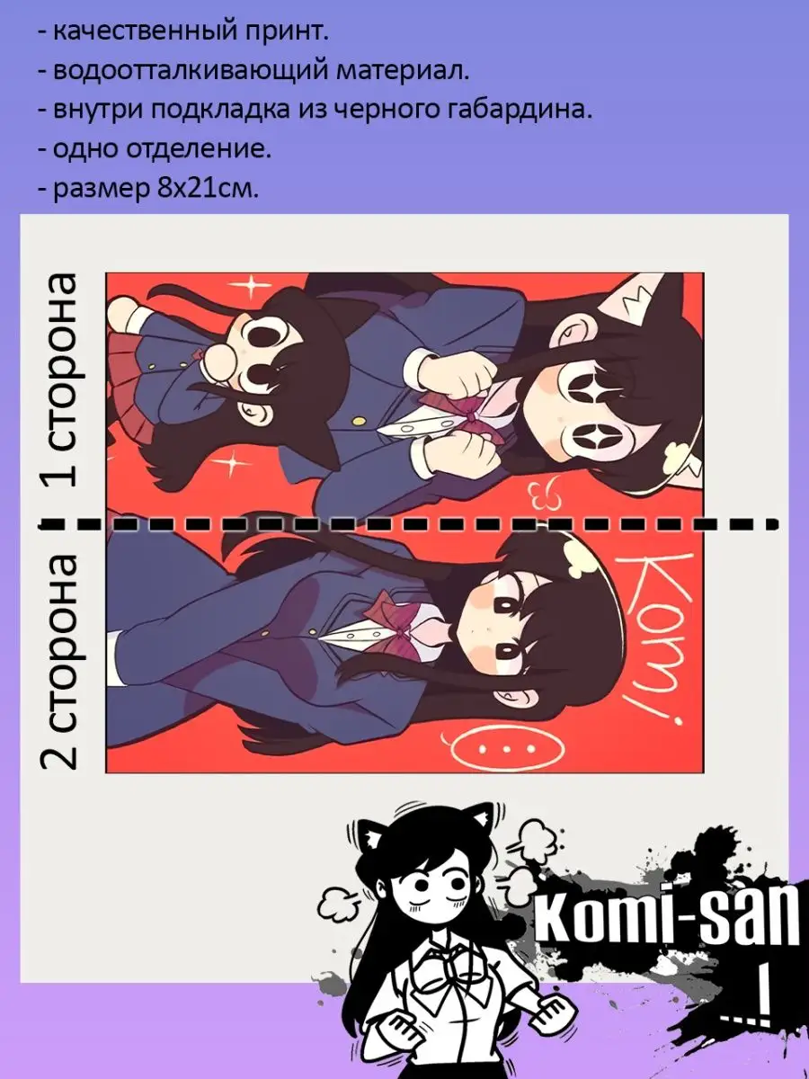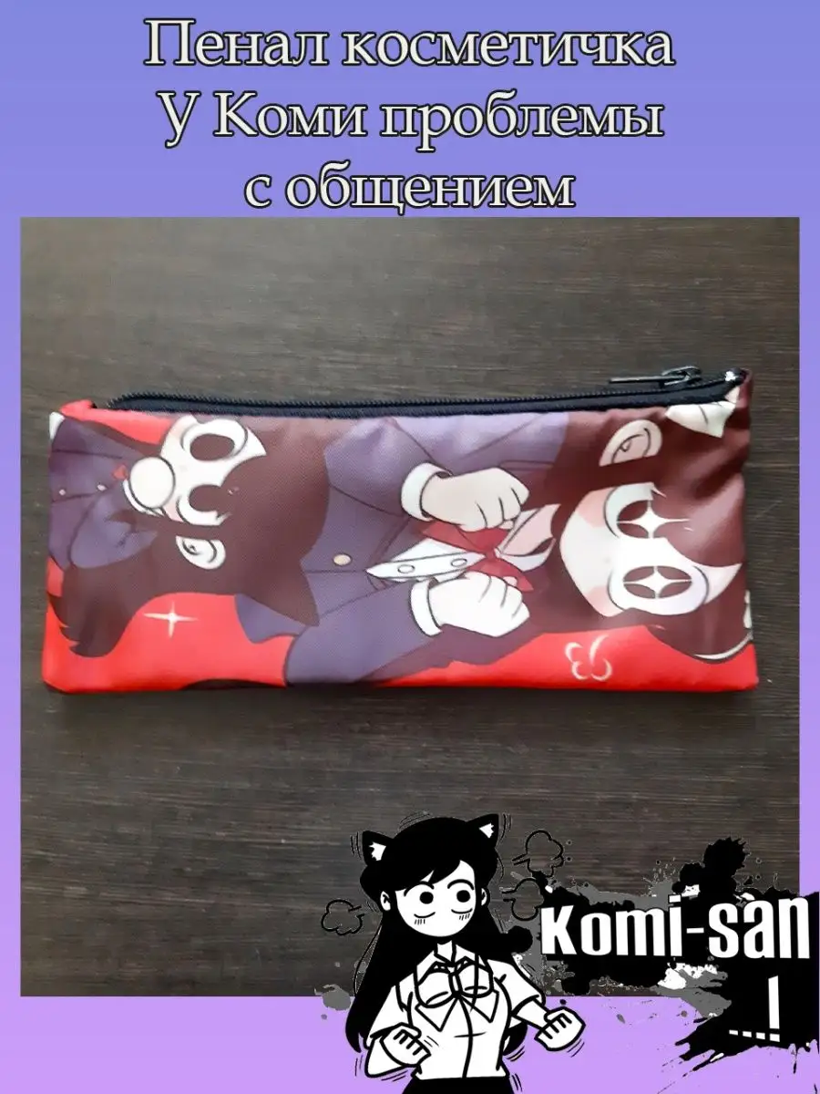 Пенал школьный с большой молнией и с одним вместительным отделением. Изображение из аниме У Коми проблемы с общением (Komi Can’t Communicate). Принт яркий и четкий, устойчивый к выцветанию и стирке.