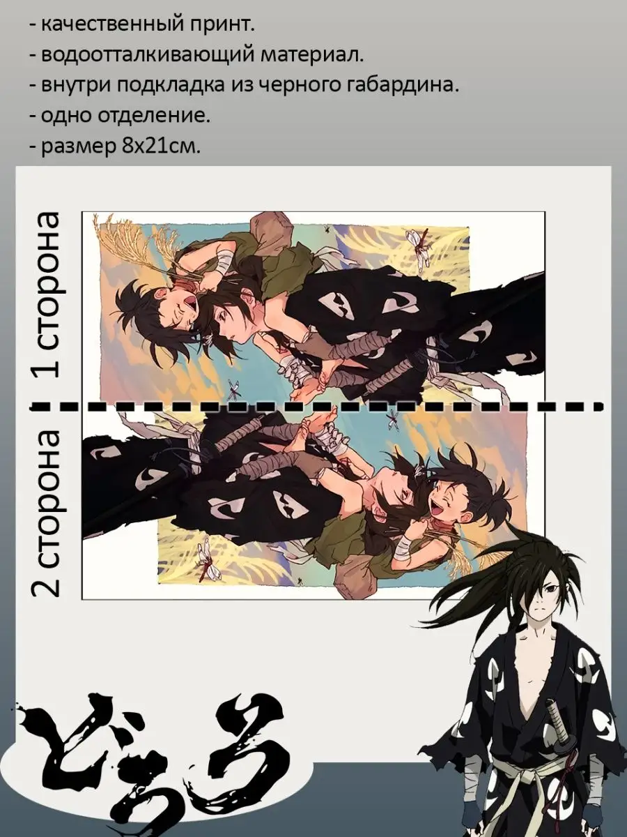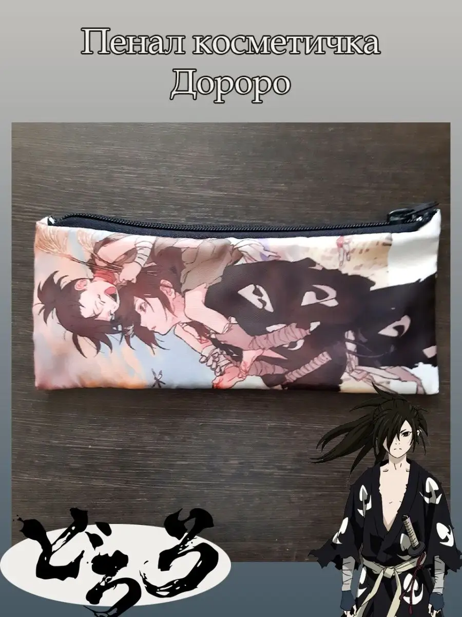 Пенал школьный с большой молнией и с одним вместительным отделением. Изображение из аниме Дороро (Dororo). Принт яркий и четкий, устойчивый к выцветанию и стирке.