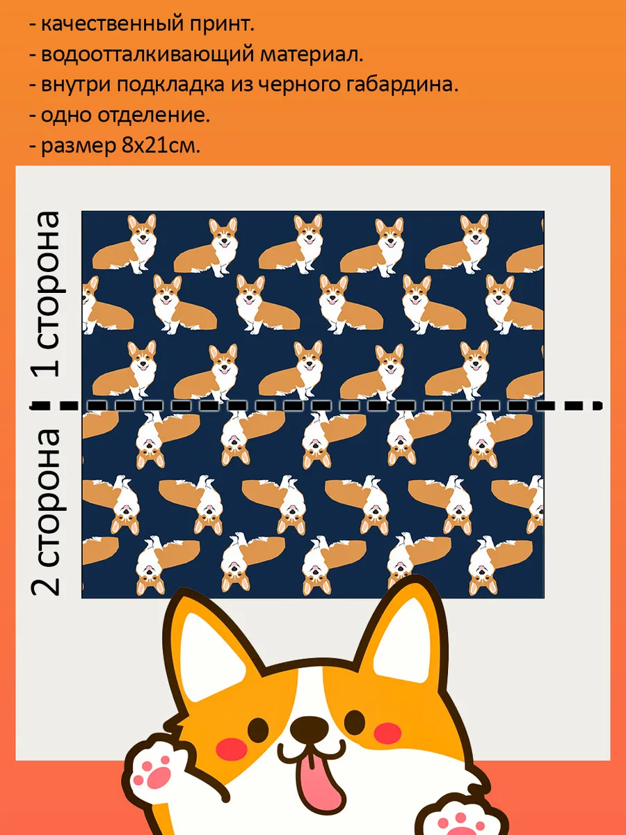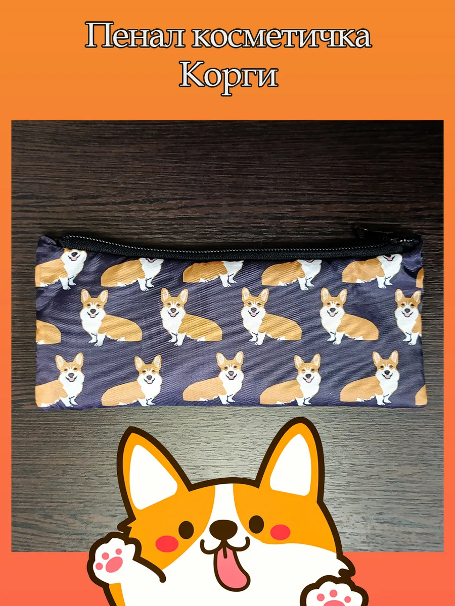Пенал школьный с большой молнией и с одним вместительным отделением. Изображение Вельш-Корги. Принт яркий и четкий, устойчивый к выцветанию и стирке.
